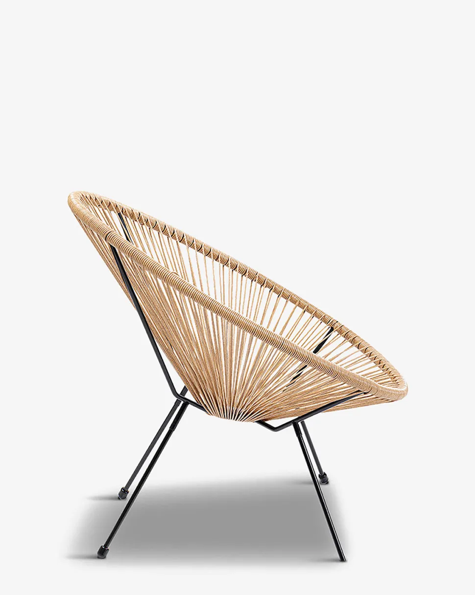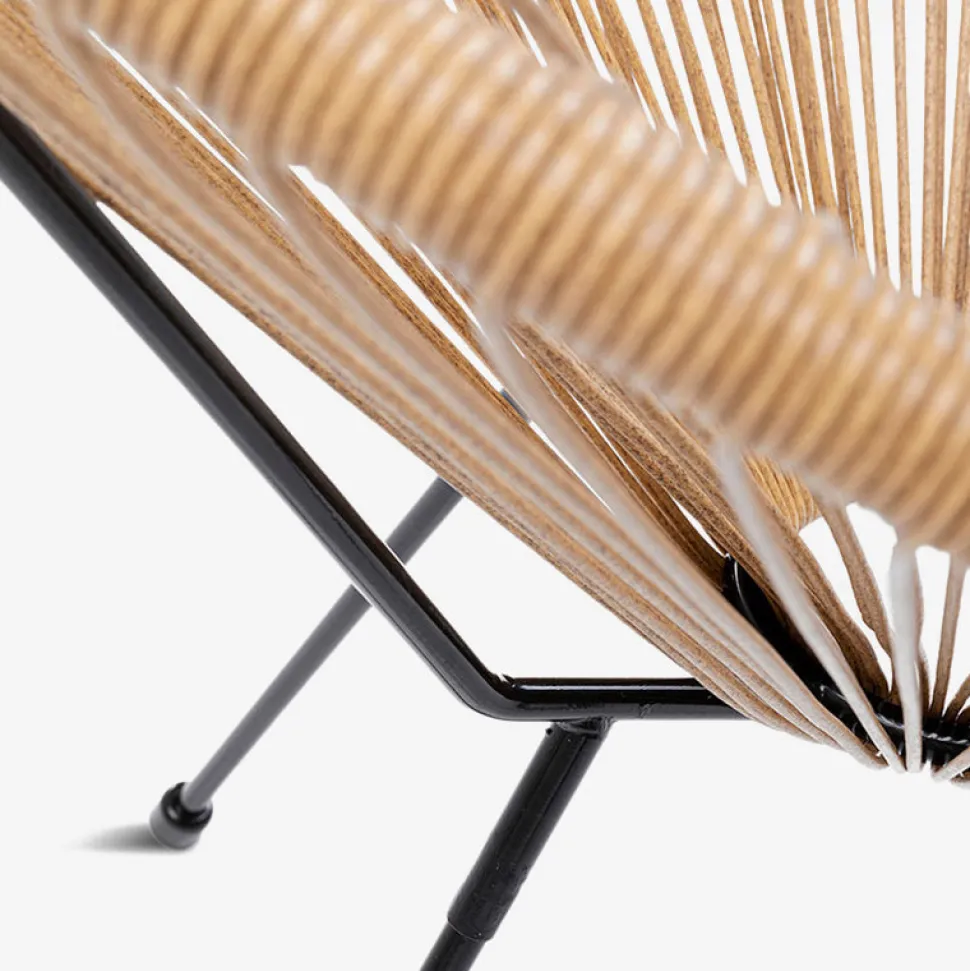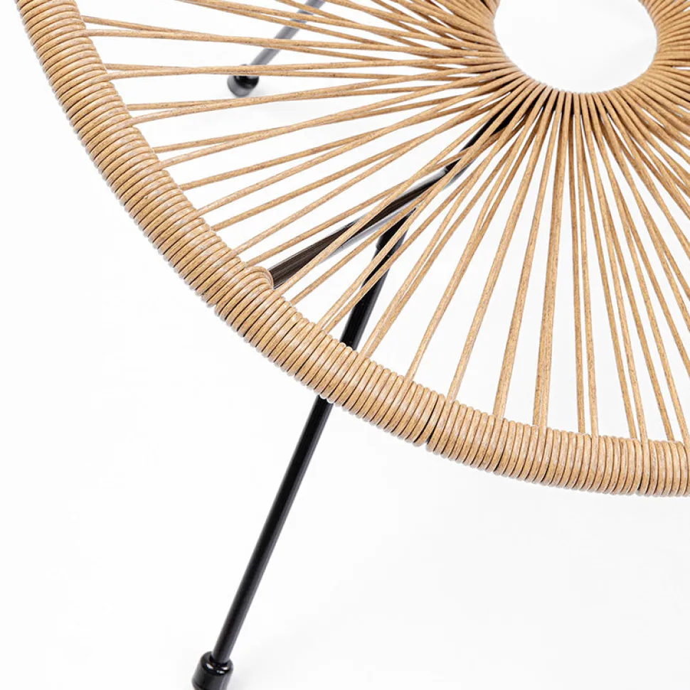 Designerstol egnet til udendørs brug i naturfarve med sort stel, til terrassen, haven og altanen.