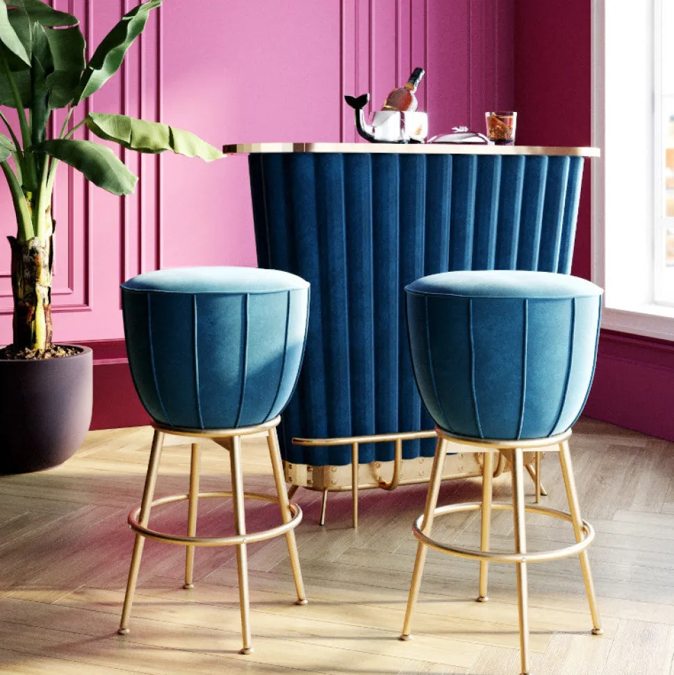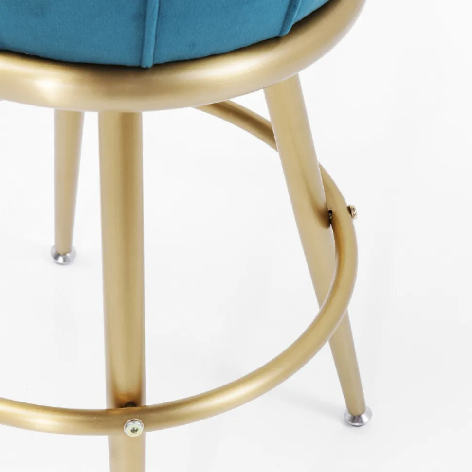 Elegant og moderne barstol i blå velour med flot stel i messing.