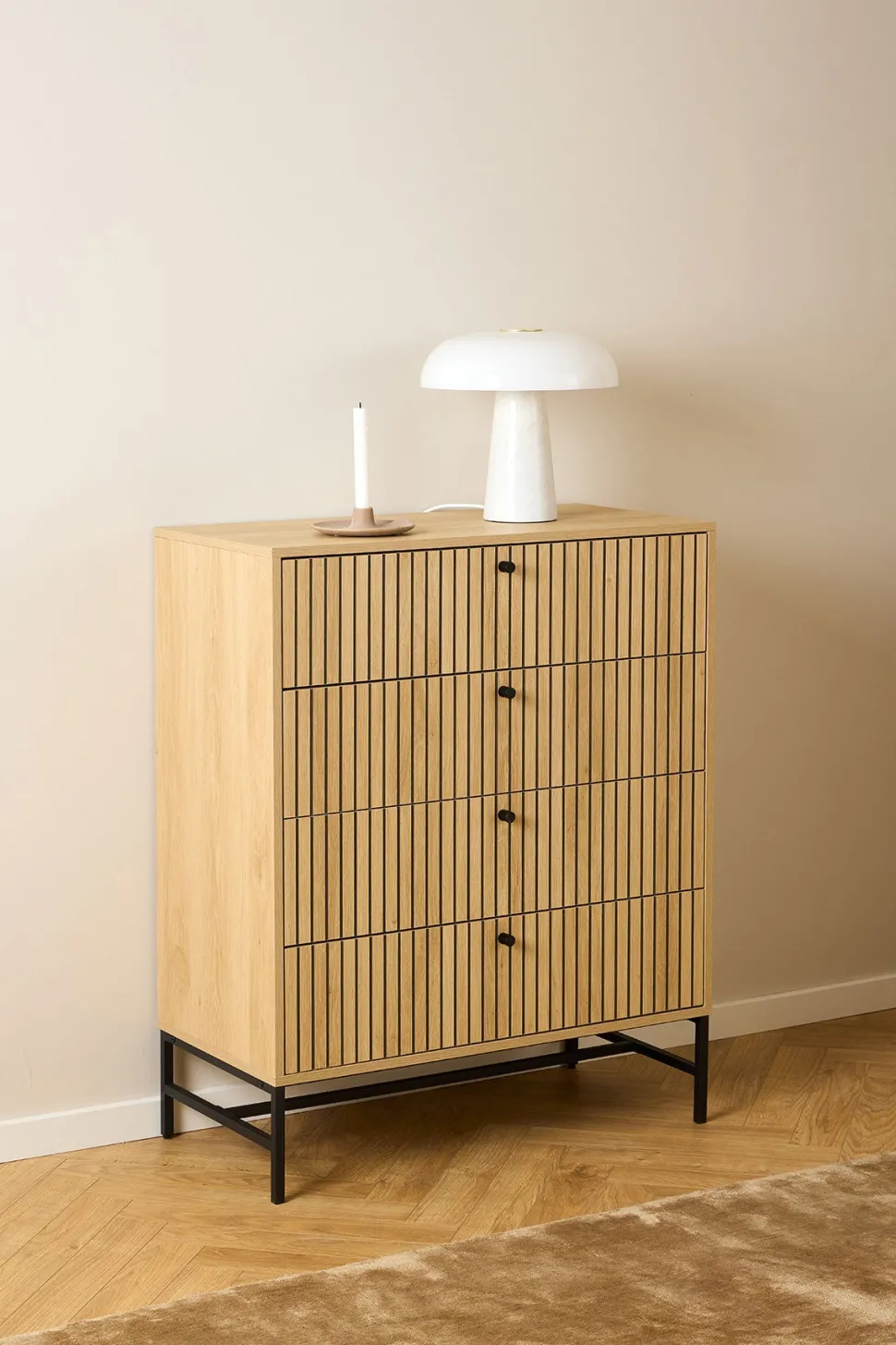 De fire rummelige skuffer giver god opbevaringsplads til tøj, tekstiler eller andre hverdagsting.