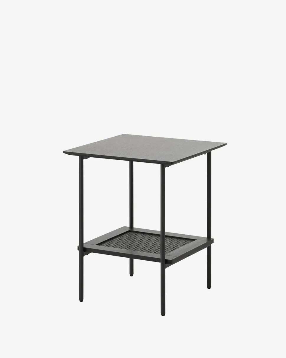Alva hjørnebordet i sort er en del af Alva-serien og kombinerer et stilrent, moderne udtryk med varme naturdetaljer. Den sorte overflade giver bordet et mere markant look, mens den flettede hylde under bordpladen tilfører struktur og lethed.