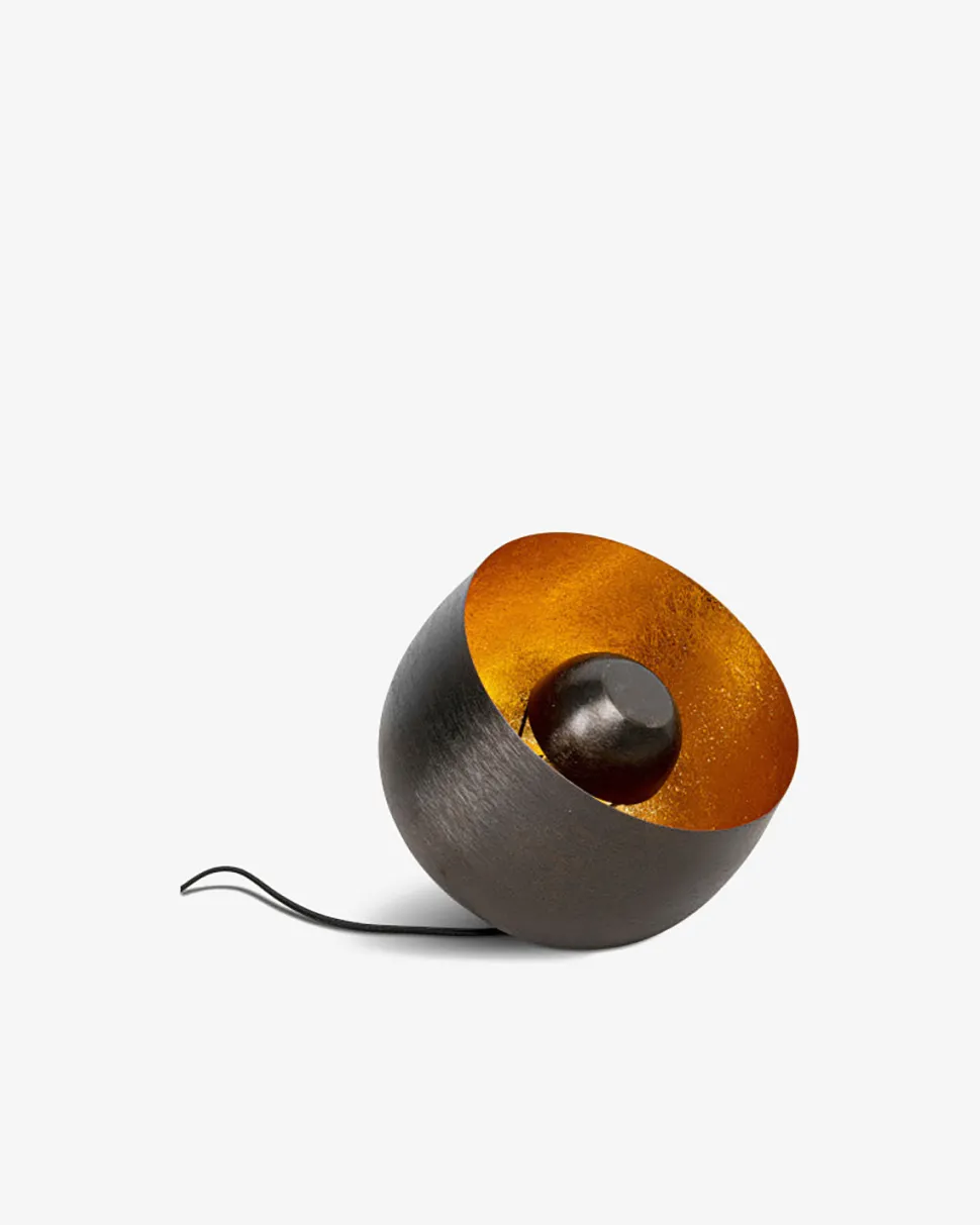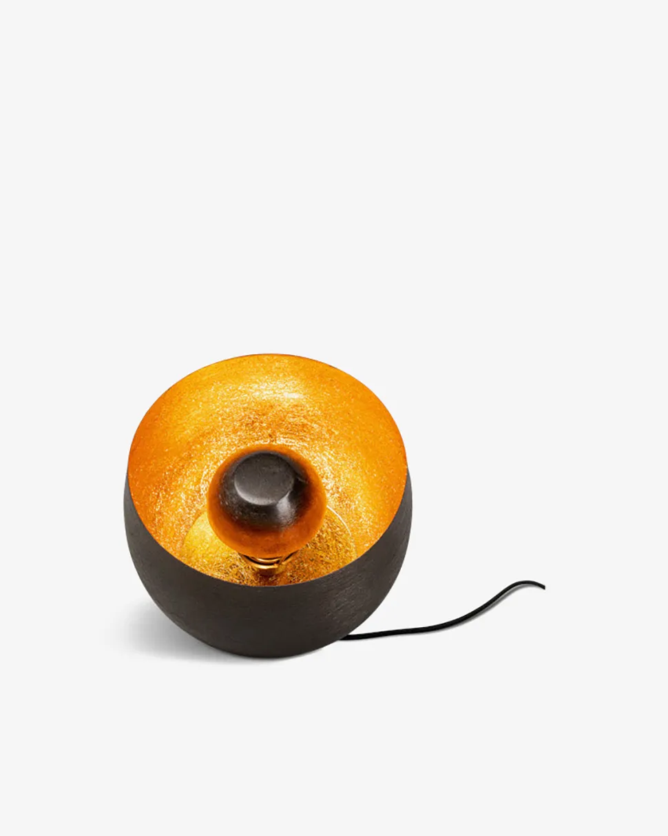 Apollon gulvlampen er en utrolig smuk og trendy lampe i sort og messingbelagt stål. Gulvlampen giver et meget blødt og hyggeligt lys, og med sin hamrede overflade ser lampen ud som om den er hjemmelavet. Den dekorative lampe kan ligge på gulvet, og med en kabellængde på to meter kan den også let flyttes fra den ene side af sofaen til den anden. Lampen kan også sagtens placeres på f.eks. skænken, det lille hjørnebord eller du kan placere den så den lyser direkte op på dit yndlingsbillede.