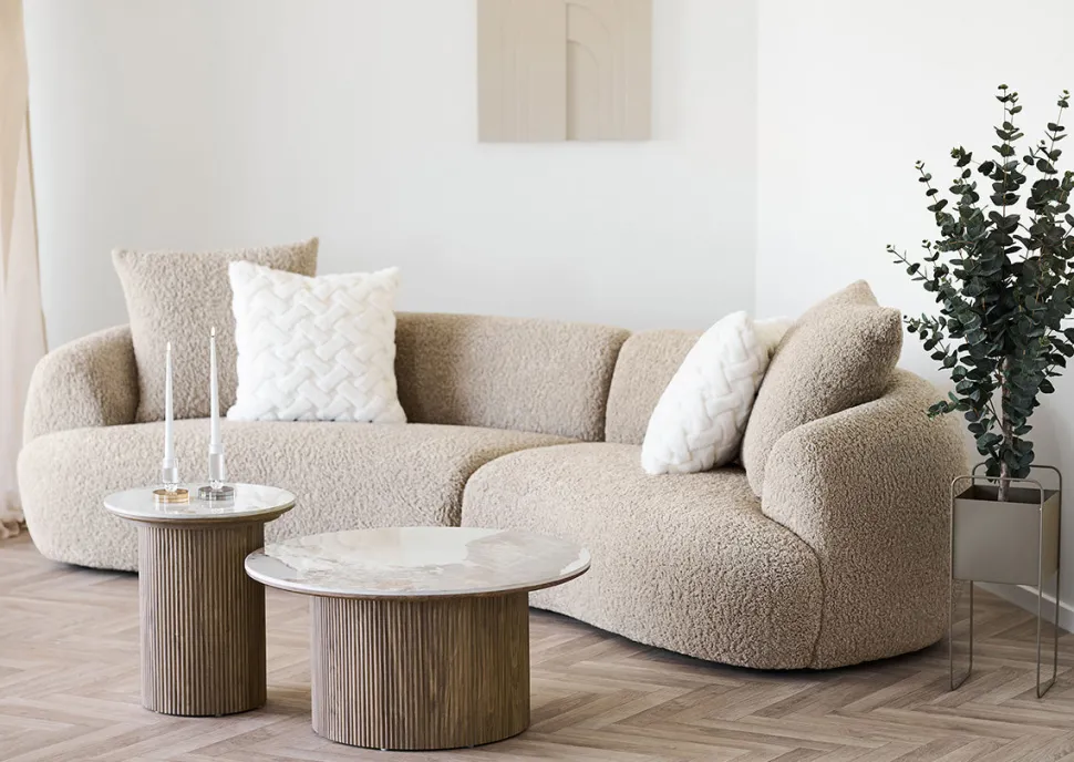 Den runde form skaber et blødt look, perfekt til både stuen, loungeområdet eller som samlingspunkt i hjemmet.