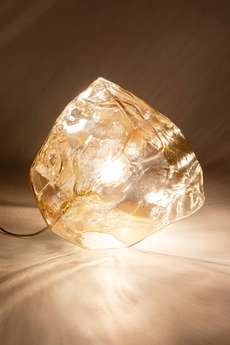 Giv dit hjem et unikt touch med denne iøjnefaldende lampe Aura, der minder om en glasklippeformation. Det galvaniserede glas changerer smukt afhængigt af lysets indfald og skaber en stemningsfuld atmosfære.