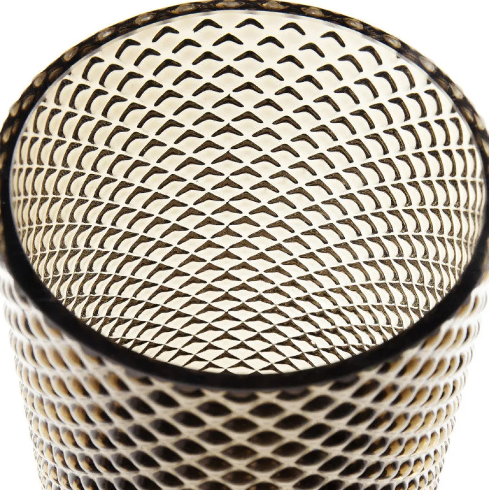 En elegant mørkgrøn vase med riflet glas og flot messingkant giver et elegant og stilfuldt udtryk.