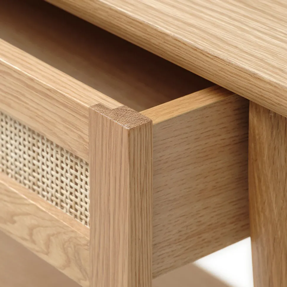 Konsolbordet har en bred skuffe, med front i lys flet, perfekt til nøgler og andet hvis bordet bruges i entréen.