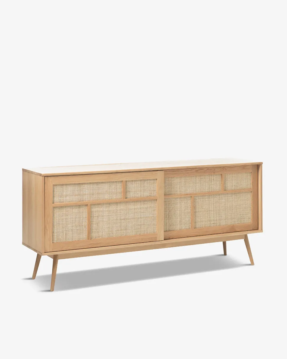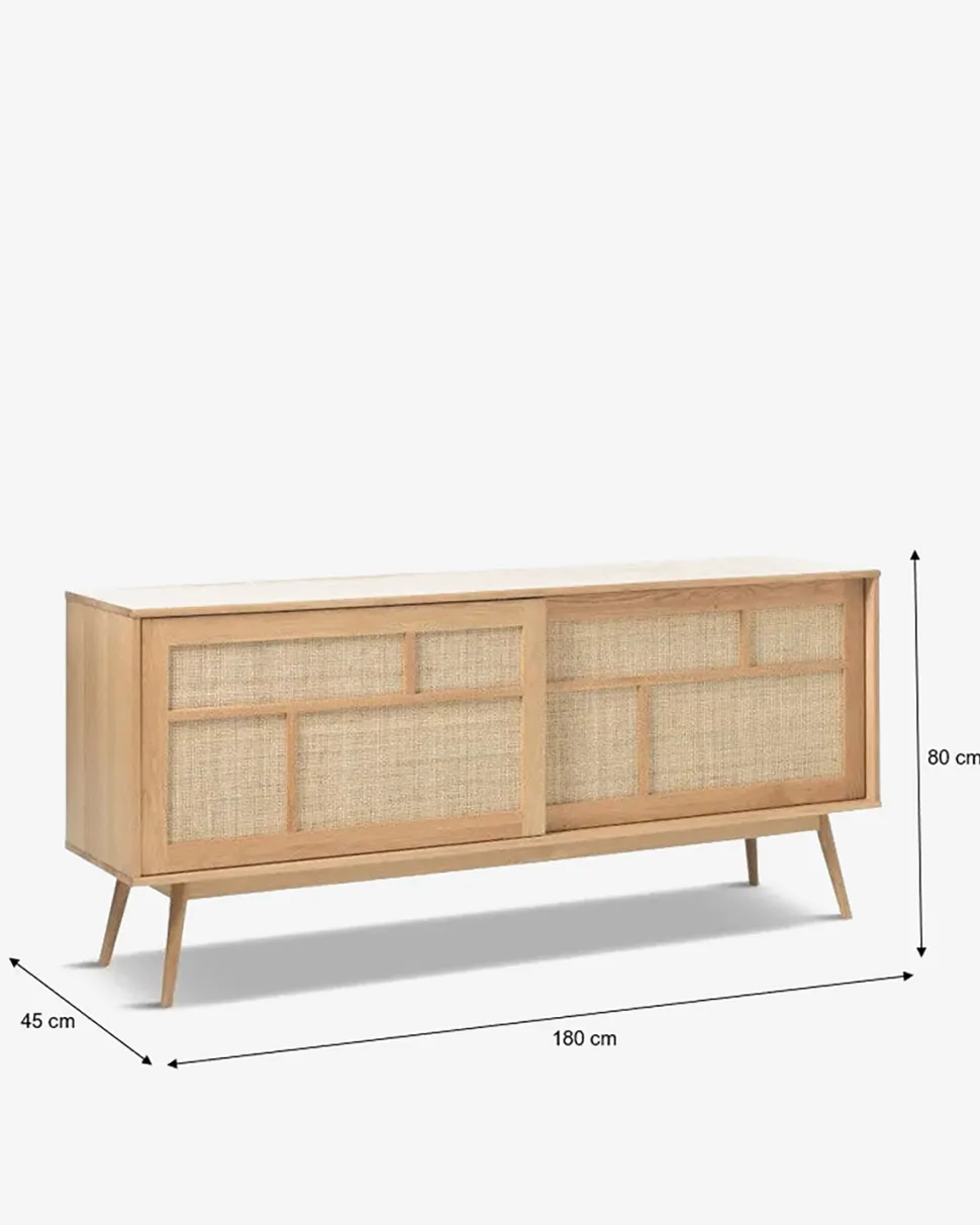 Designet er tidsløst klassisk og skydelågerne med flet giver det et moderne twist, som får skænken til at passe ind i de fleste stilarter og hjem.