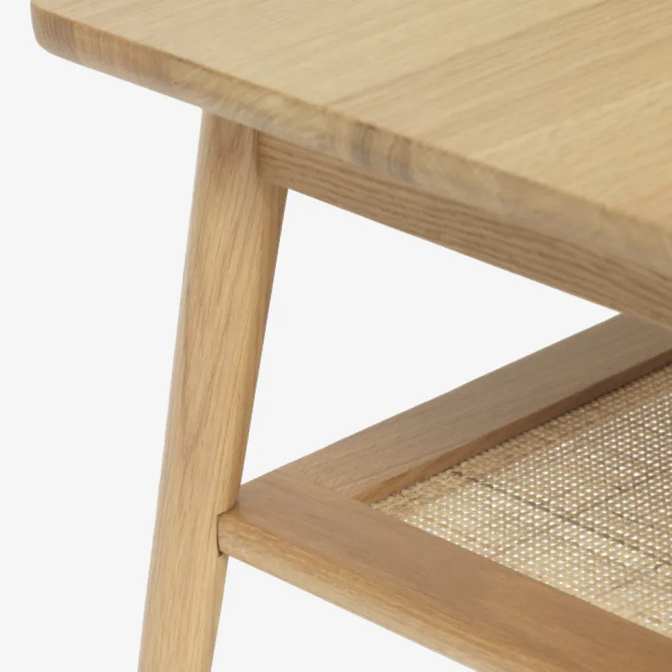 Bordet har et tidsløst klassisk udtryk med et moderne twist, i form af uderhylden med flet. Flettet giver bordet et let udtryk og er en fin detalje i designet.