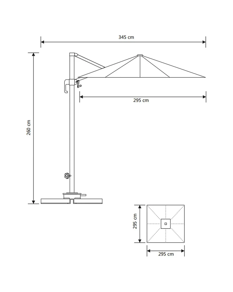 Den grå aluminiumsstok giver et moderne udtryk og sikrer en stabil konstruktion. Parasollen er udstyret med et praktisk håndtag, som gør det nemt at folde den op og ned. Skærmen kan samtidig tiltes, så skyggen let kan tilpasses solens bevægelse i løbet af dagen.