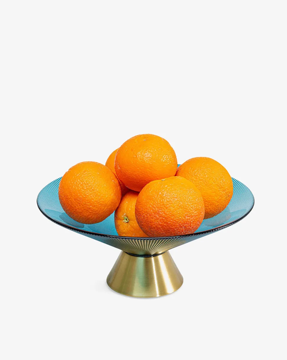 Birdie glasskål i en flot blå farve med messingbund, som vil pynte elegant på ethvert bord.