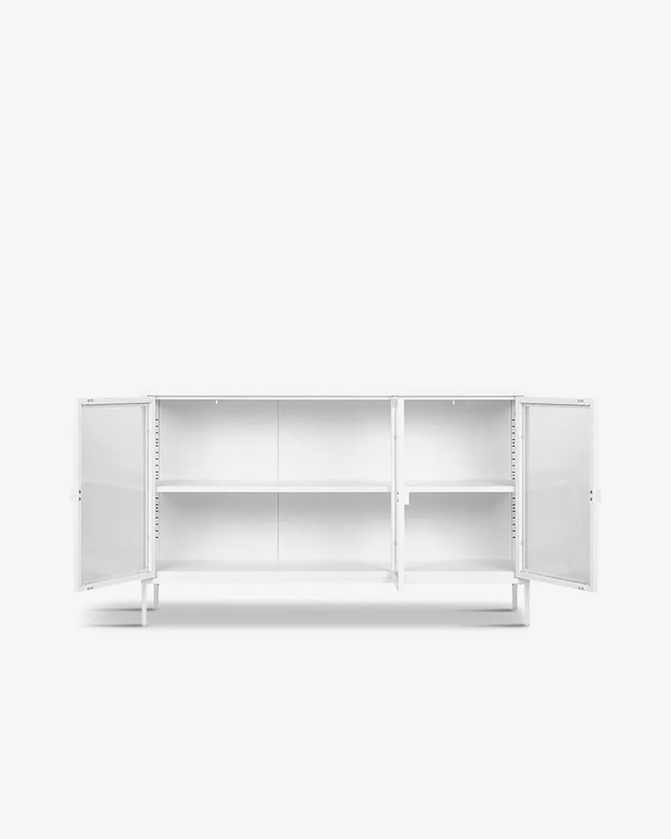 Denne stilfulde Brisbane skænk i hvid metal og med hvide metalben er den perfekte tilføjelse til ethvert moderne hjem.
