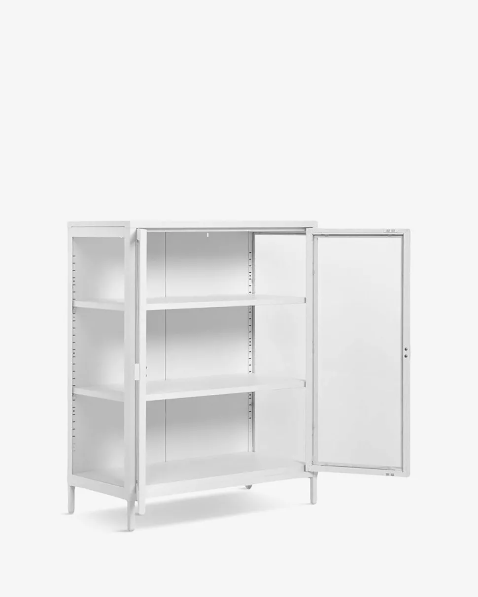 Giv dit hjem et moderne præg med vores Brisbane Vitrine i elegant hvid metal. Denne tidløse vitrine er en lys tilføjelse til rummet.