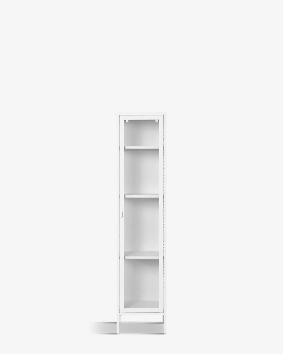 Giv dit hjem et moderne præg med vores Brisbane vitrine i elegant hvid metal.