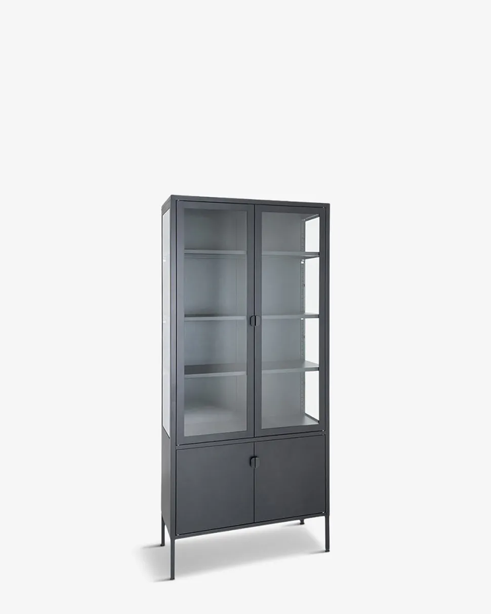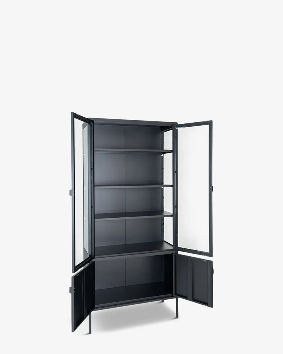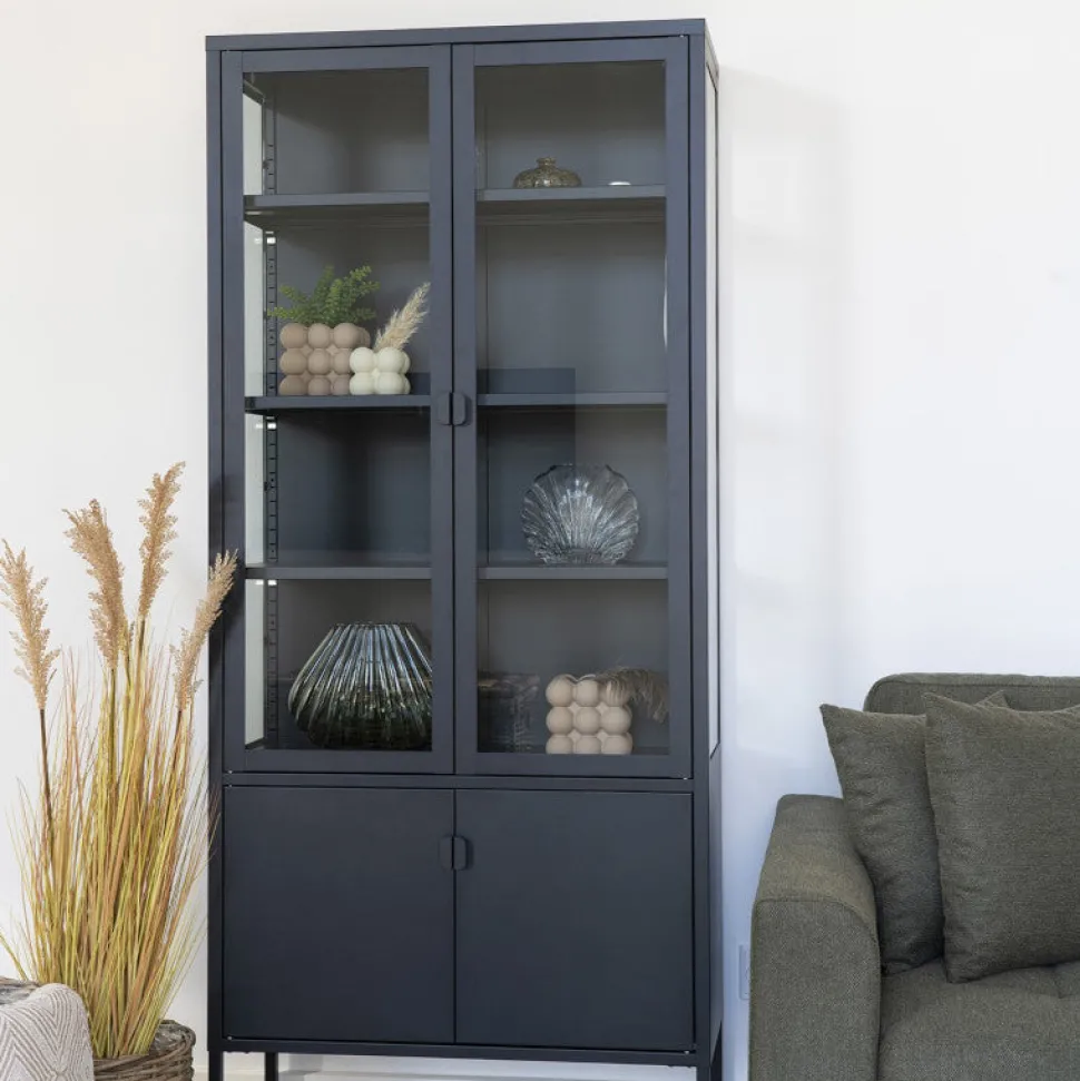 Giv dit hjem et moderne præg med vores Brisbane vitrine i elegant sort metal.