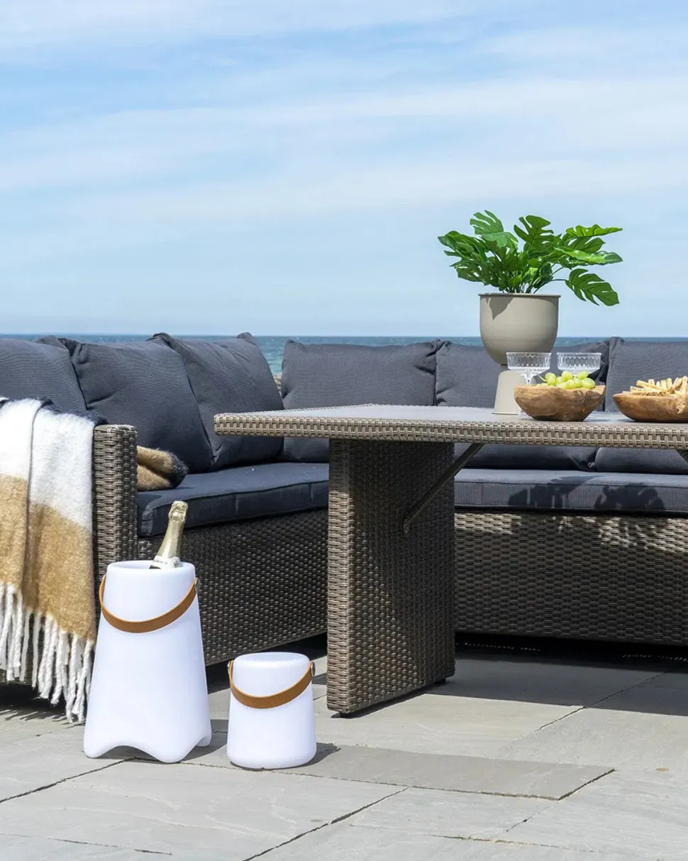 Bristol LED vinkøleren kombinerer funktionalitet og hyggelig belysning i ét design. Den fungerer både som vinkøler og stemningslampe, hvilket gør den perfekt til sommeraftener på terrassen eller hyggelige middage udendørs.