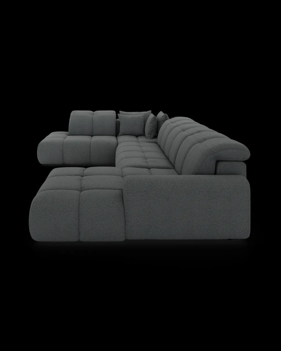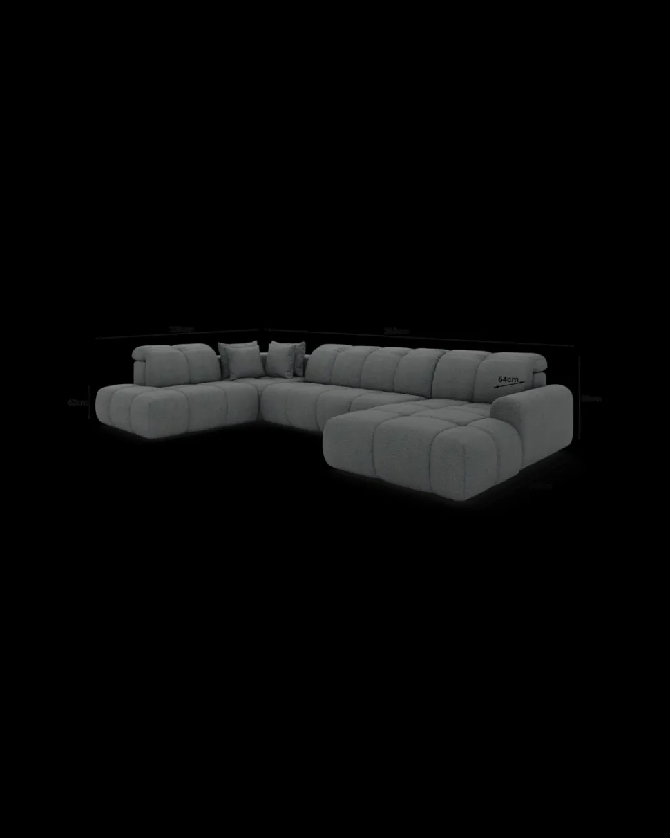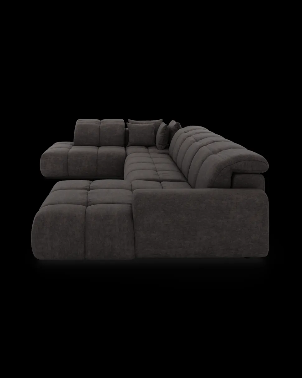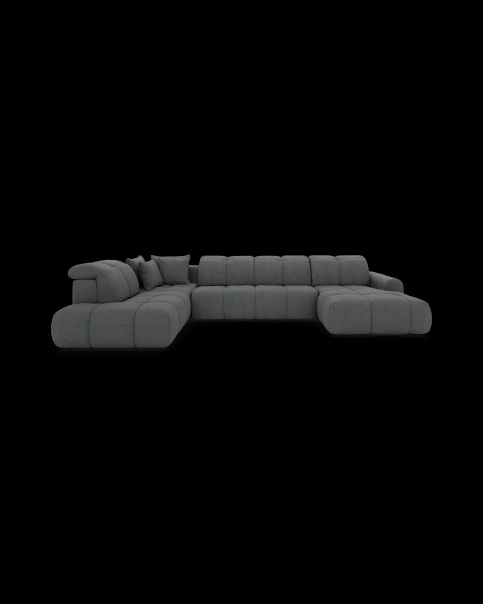 BULLET U-hjørnesofaen er den ultimative flydersofa til dig, der vil have masser af plads og et stærkt udtryk i stuen. Kombinationen af rundt hjørne, chaiselong og open end giver en opstilling, der både føles stor og åben – perfekt til familieliv og hyggelige aftener.