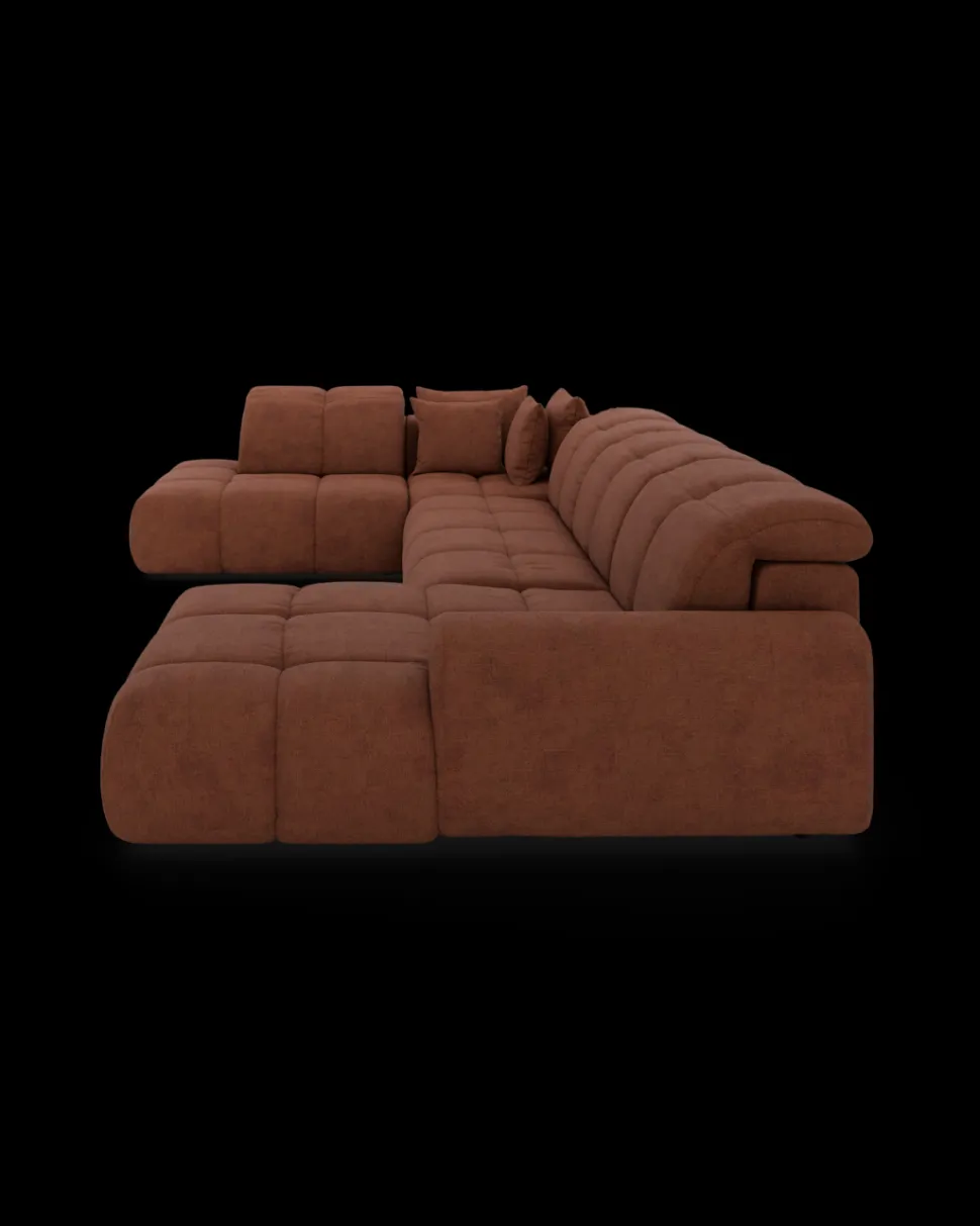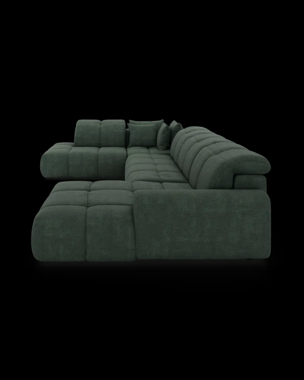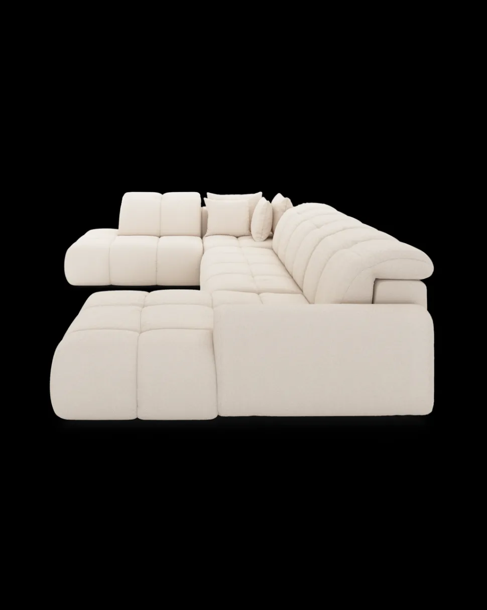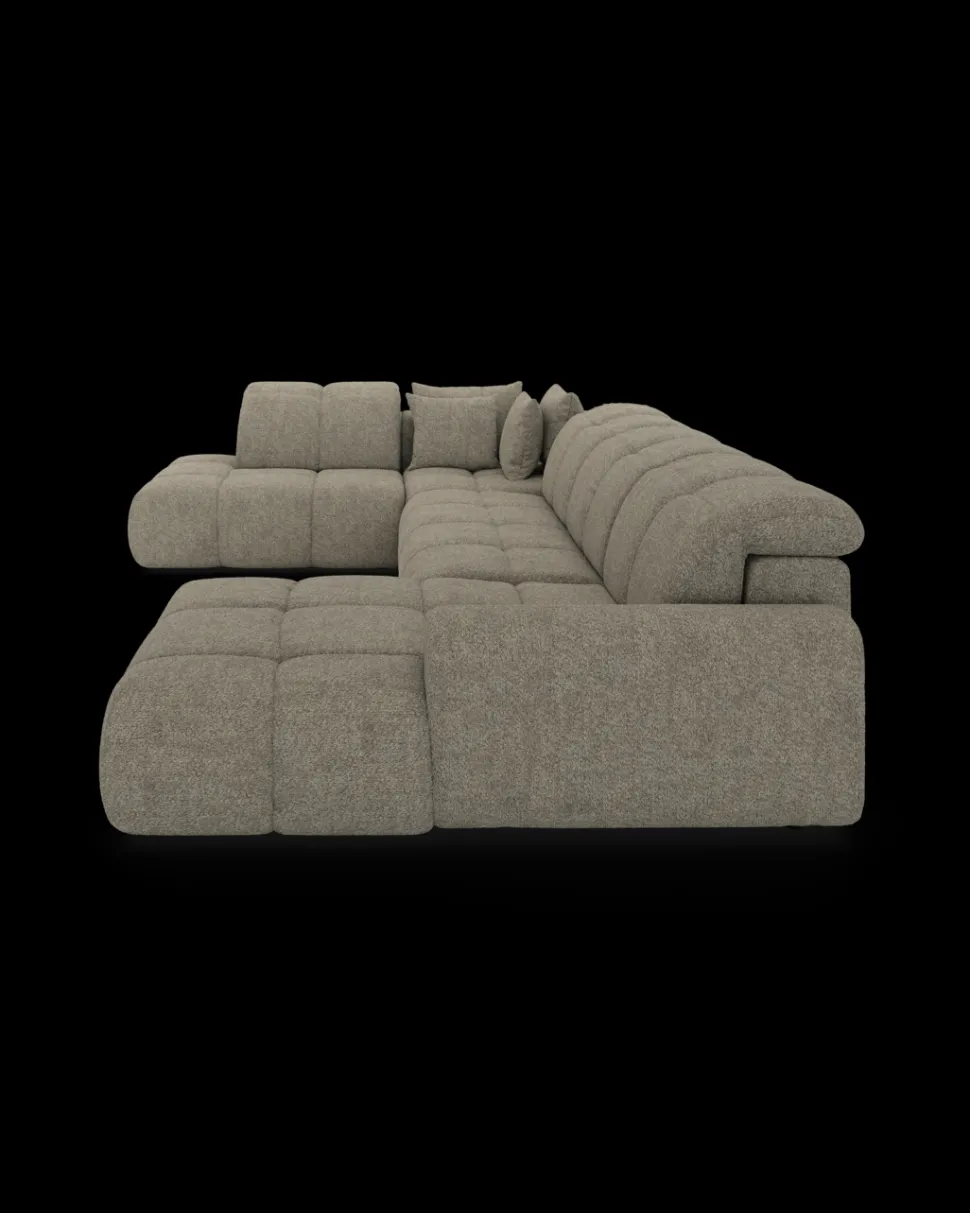 BULLET U-hjørnesofaen er den ultimative flydersofa til dig, der vil have masser af plads og et stærkt udtryk i stuen. Kombinationen af rundt hjørne, chaiselong og open end giver en opstilling, der både føles stor og åben – perfekt til familieliv og hyggelige aftener.