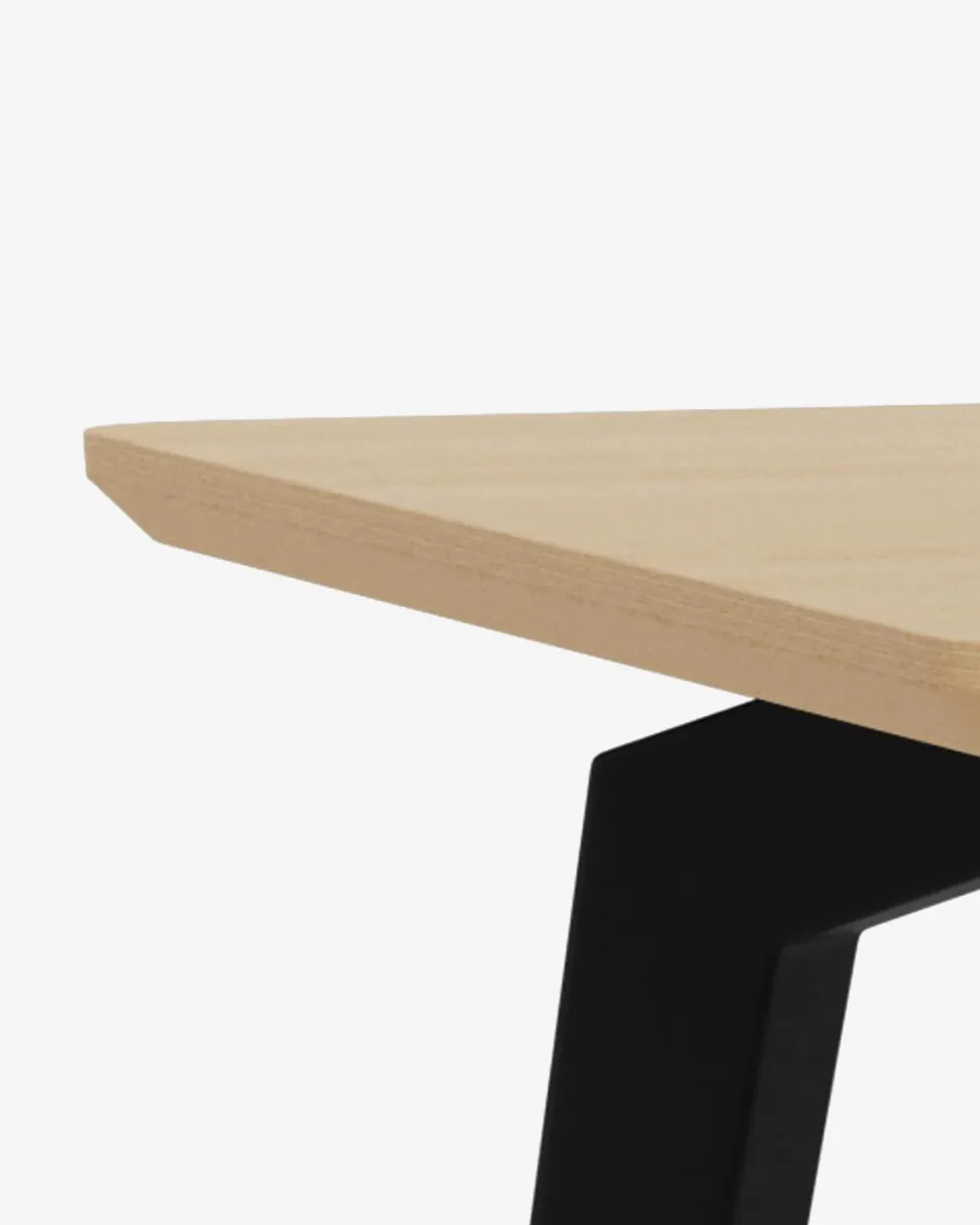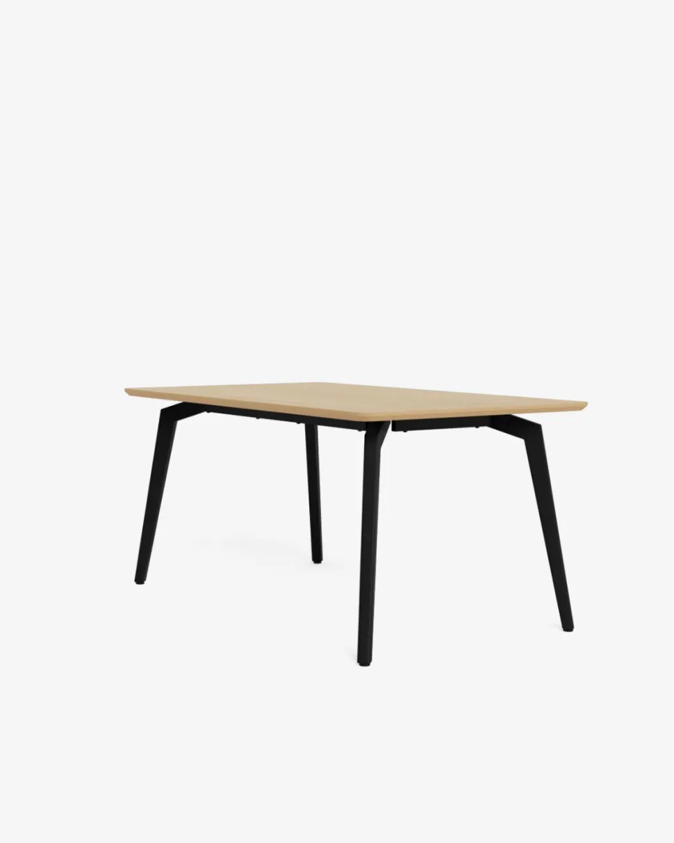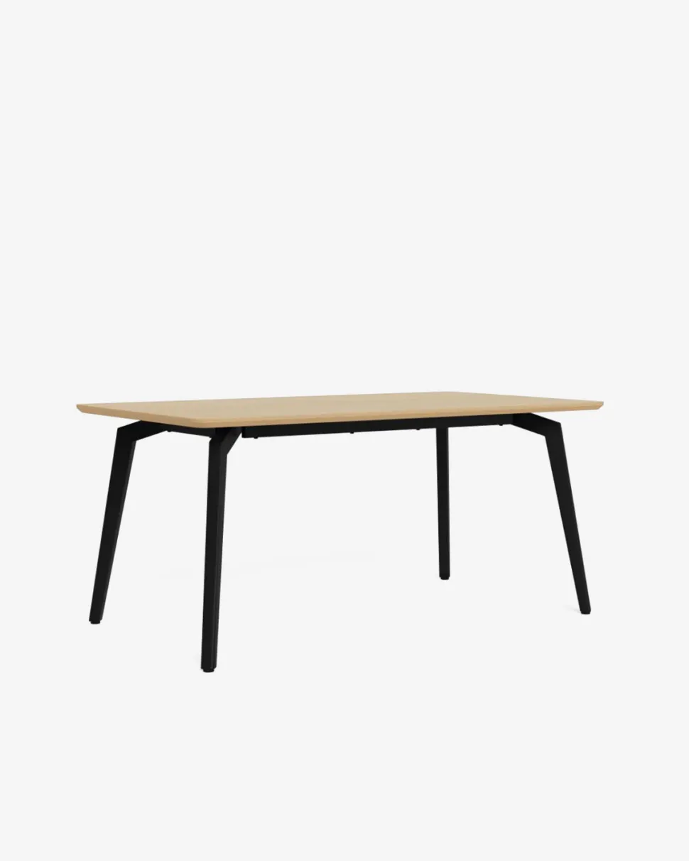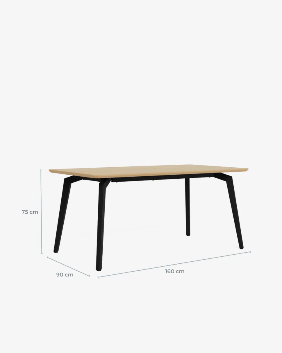 Det sorte pulverlakerede metalstel med skråtstillede ben giver bordet et let og moderne udtryk, samtidig med at det sikrer en stabil konstruktion. Kombinationen af den varme eg-finish og det sorte stel gør Cadiz nemt at matche med både klassiske og moderne spisebordsstole.