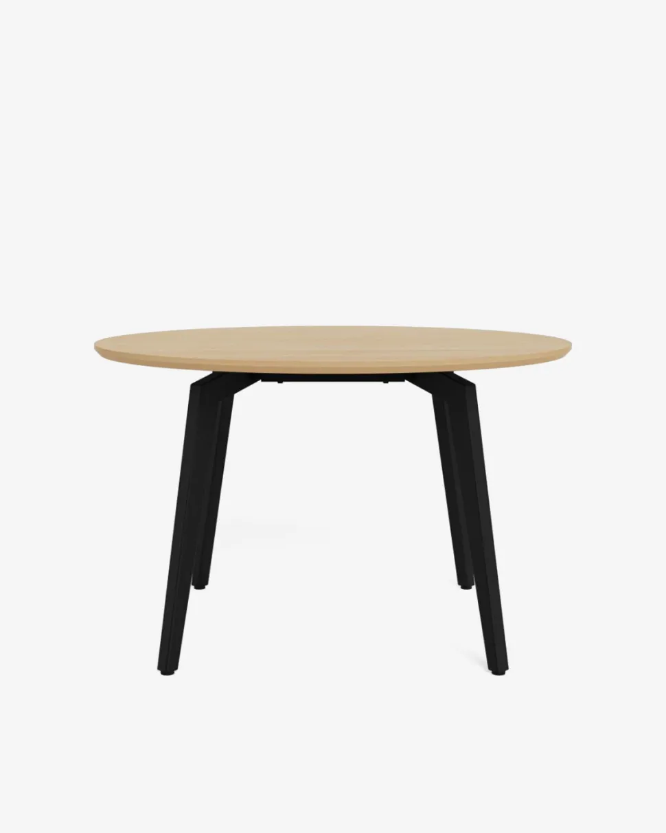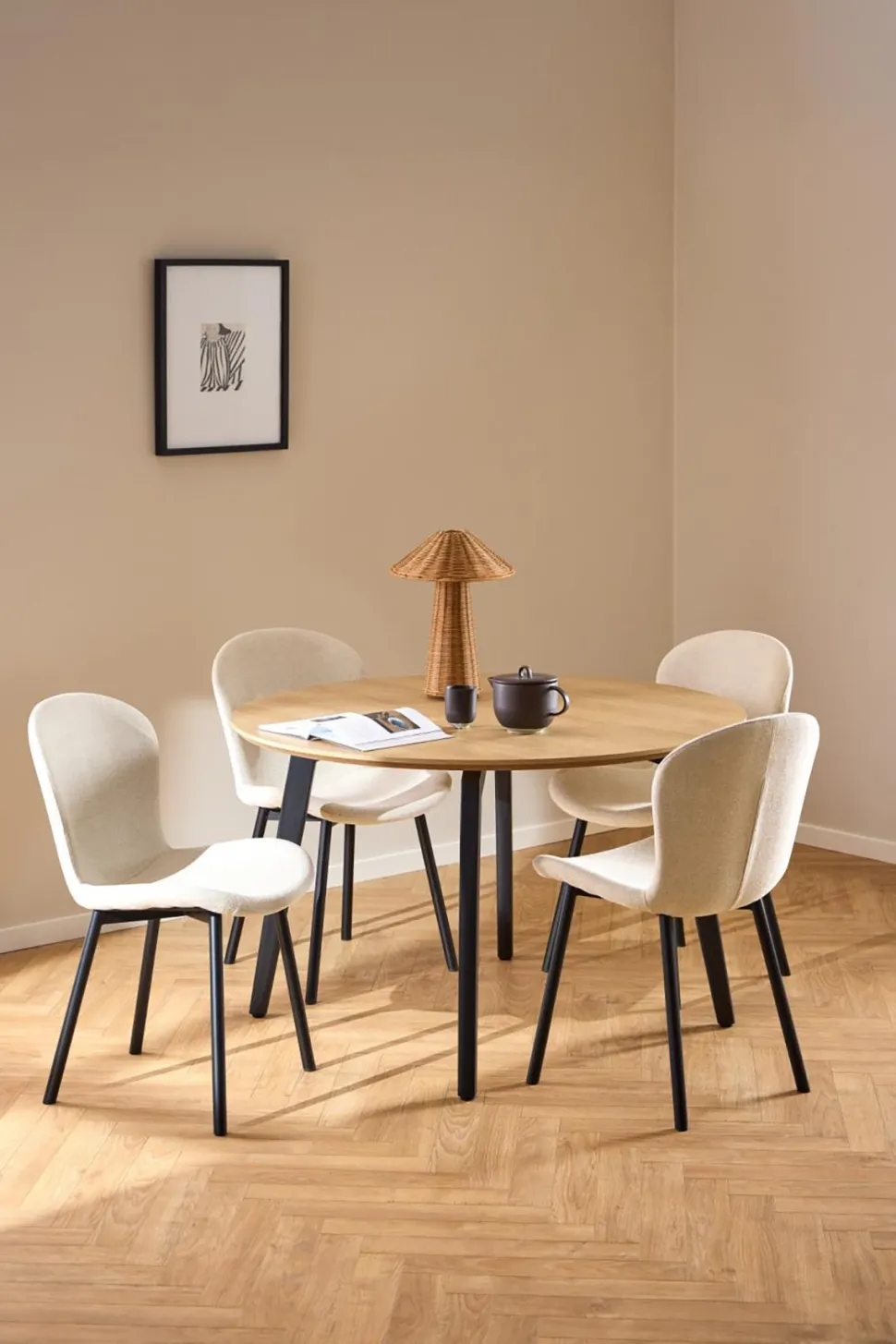 Cadiz spisebord – rundt bord i eg look med sort stel. Vedligeholdelsesfri bordplade.