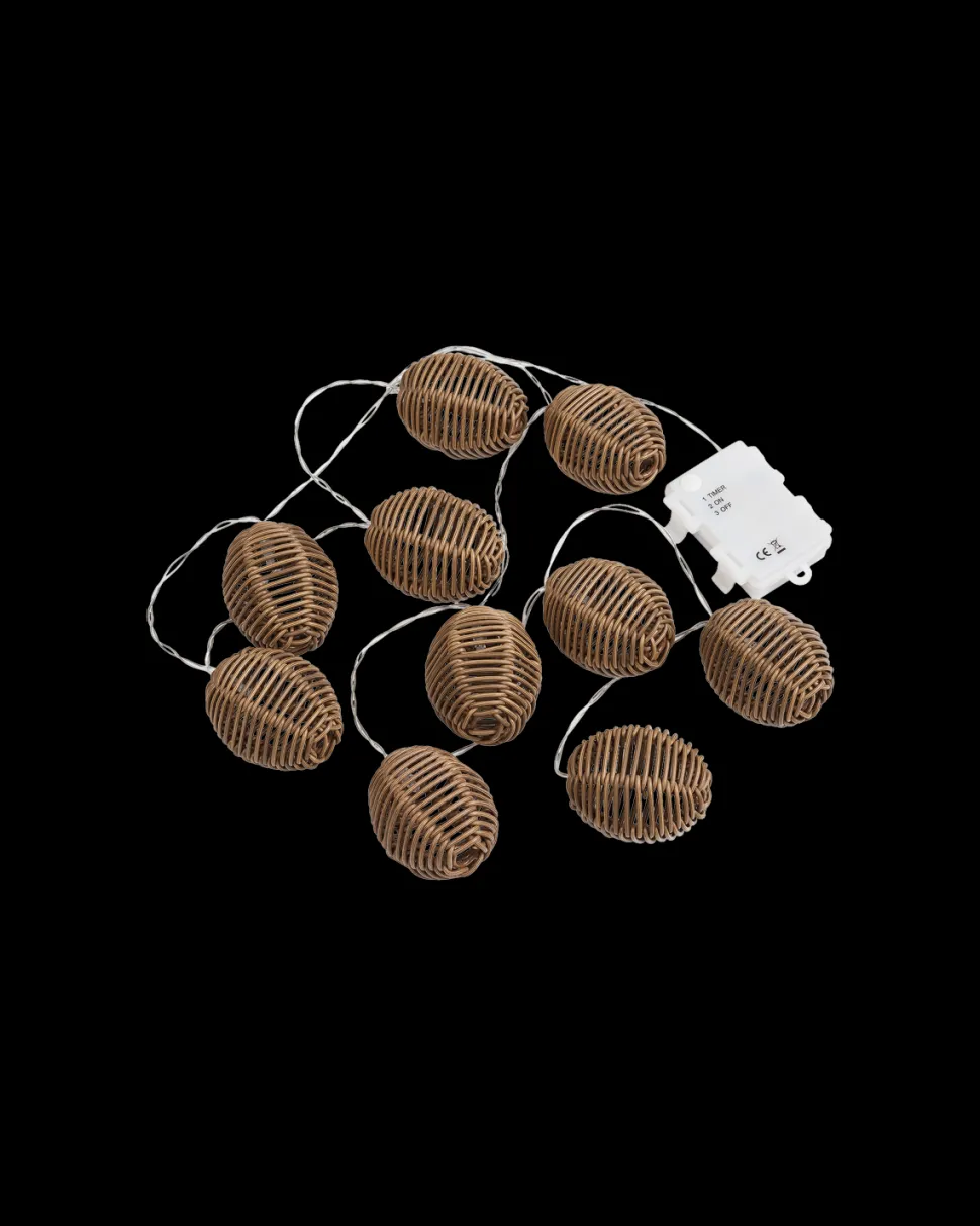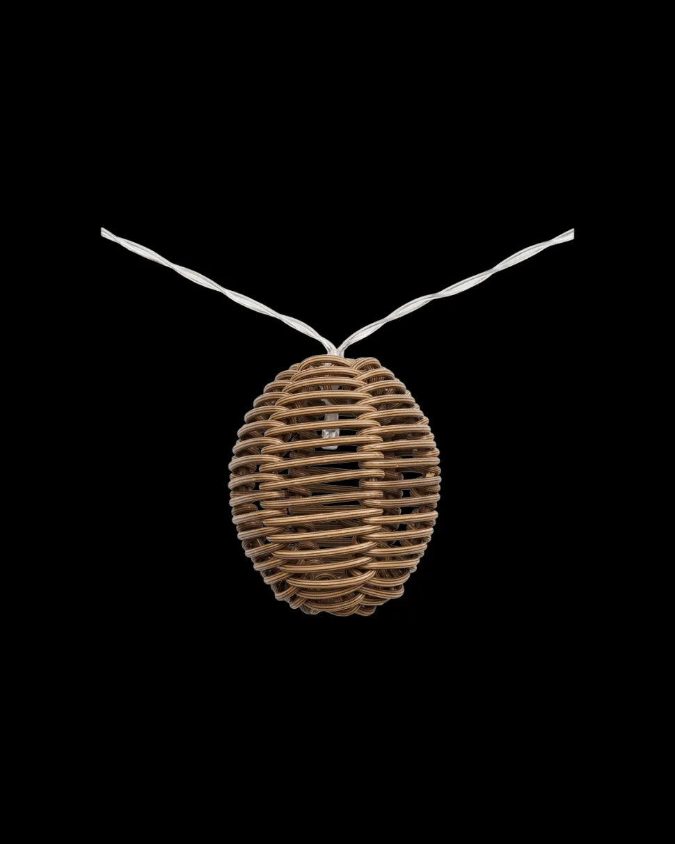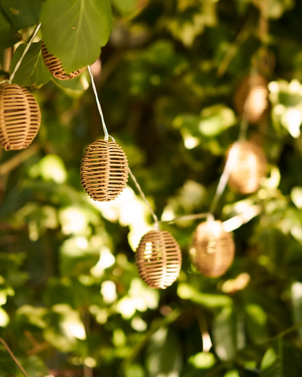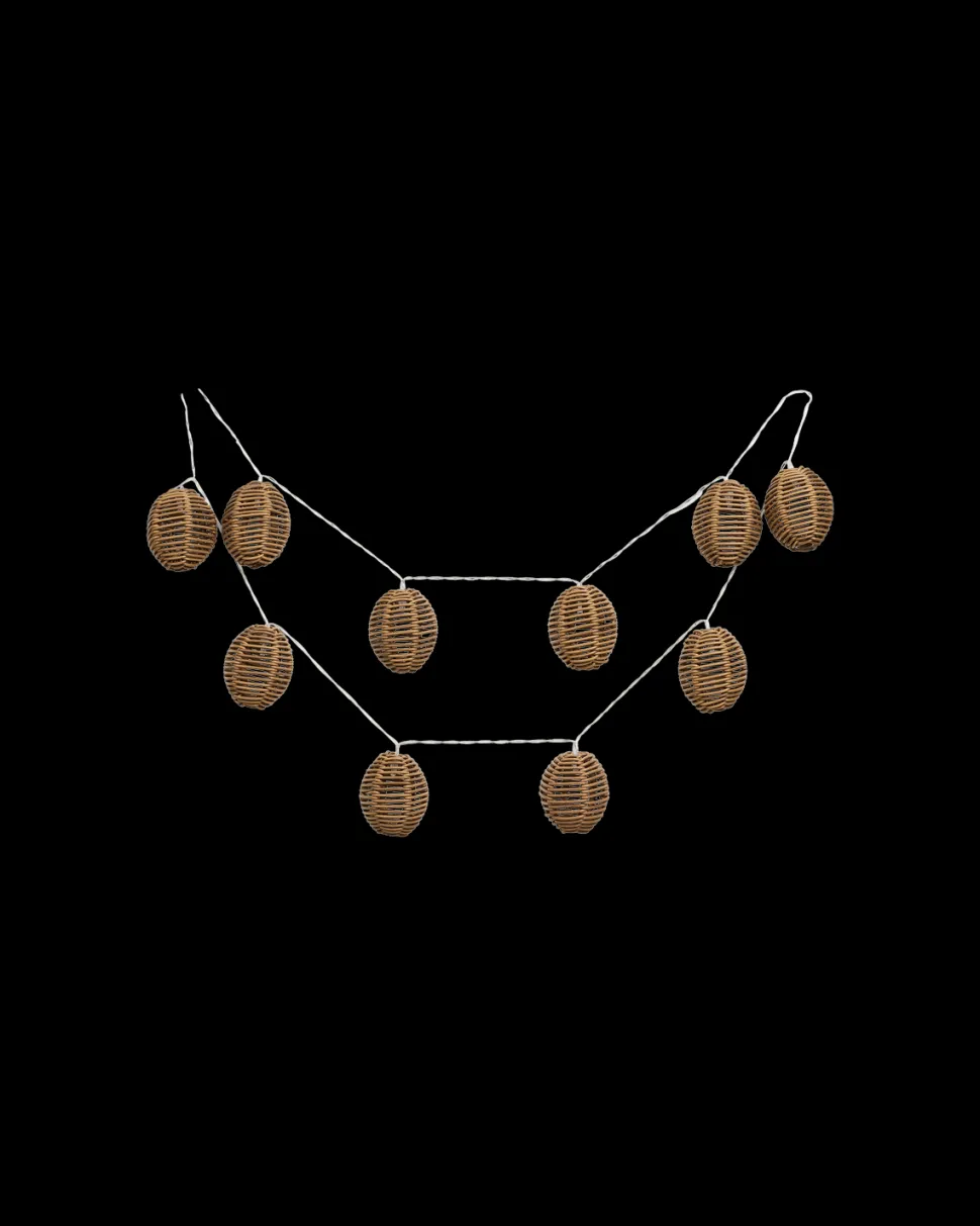 Carlisle lyskæde i natur polyrattan og sort metal. Dekorativ lyskæde til hyggelig belysning på terrasse eller i haven.