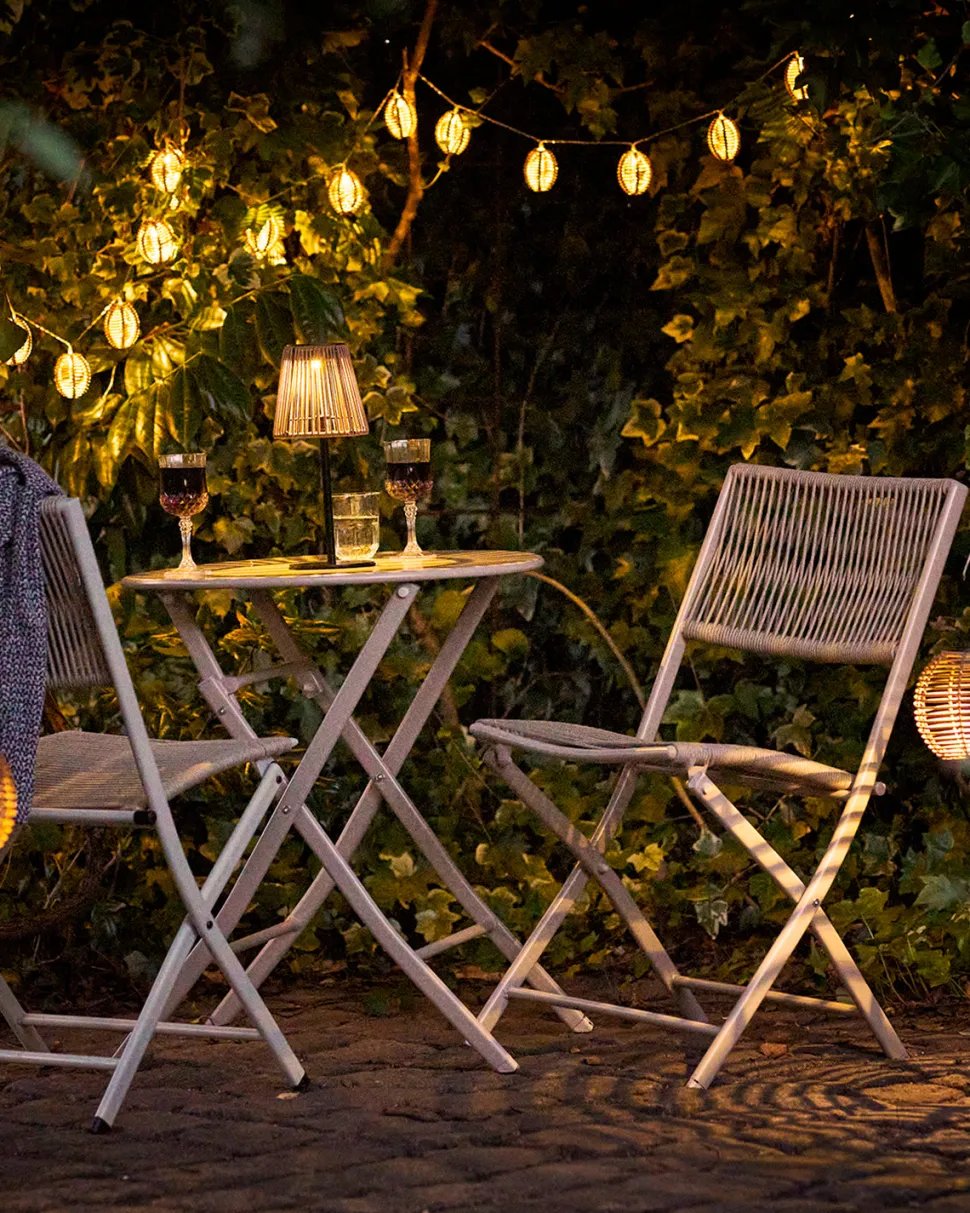 Carlisle lyskæden skaber en hyggelig og stemningsfuld belysning på terrassen, altanen eller i haven. Kombinationen af naturfarvet polyrattan og sort metal giver lyskæden et elegant og naturligt udtryk, der passer perfekt til udendørs omgivelser.