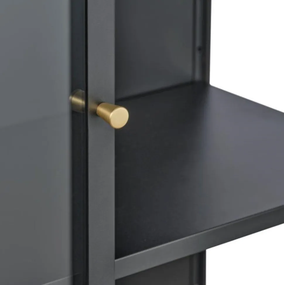 Det høje flotte Carmel vitrineskab med to glaslåger samt seks hylder, er en smuk kombination af rå metal med et industrielt udtryk, og de fine glaslåger giver et elegant look.