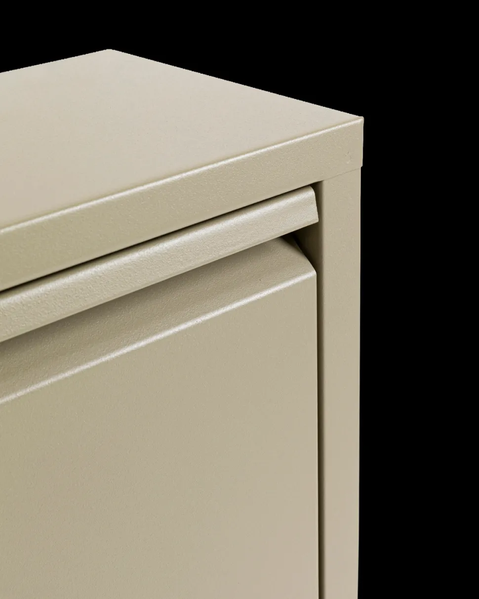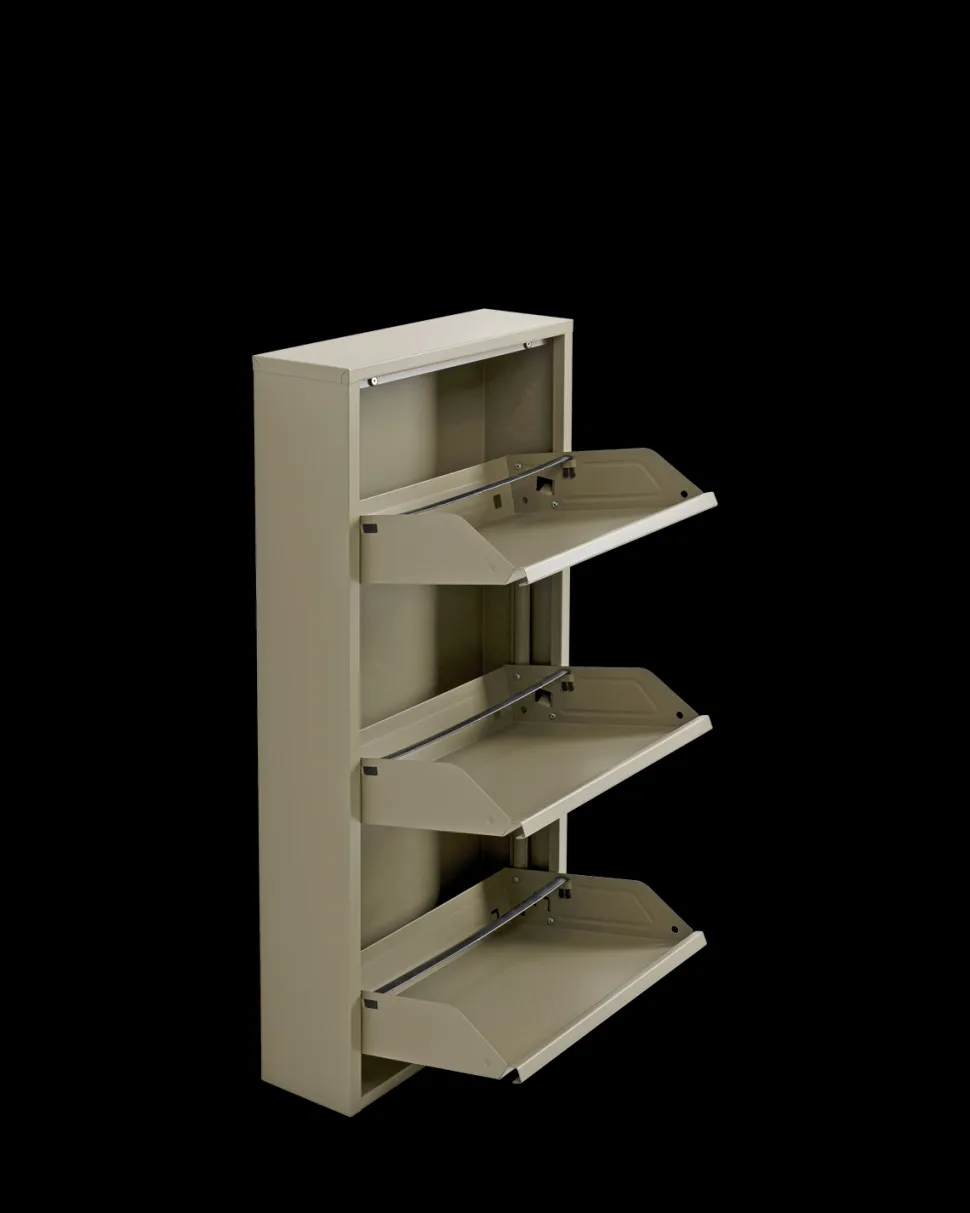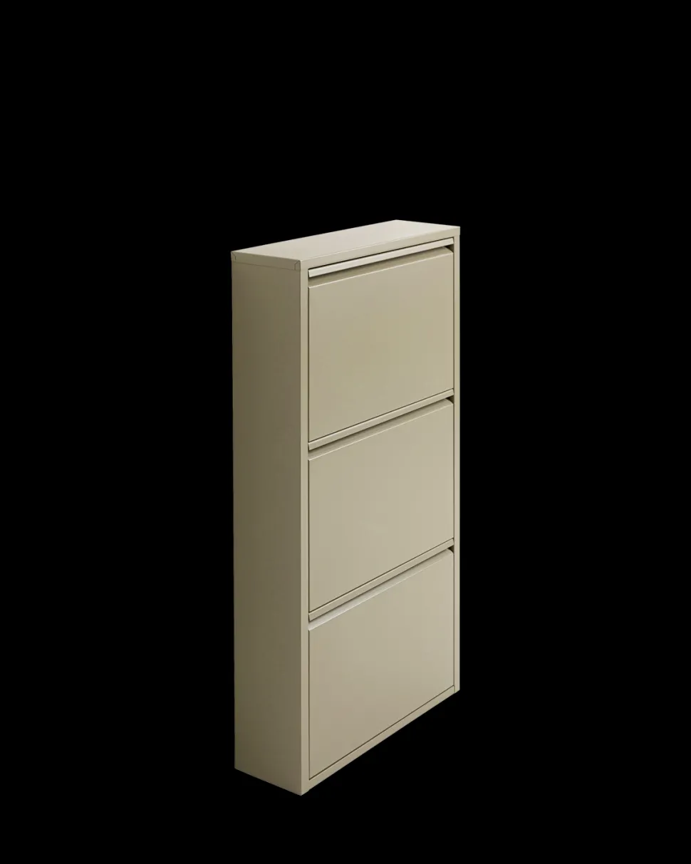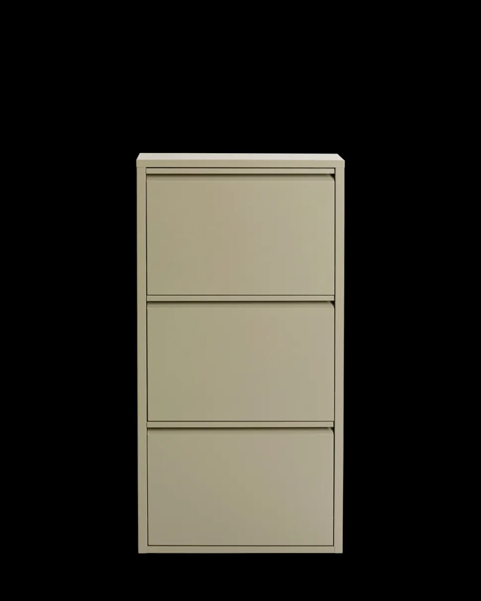 Caruso skoskab – 3 låger i khaki. Kompakt metal skoskab til entréen.