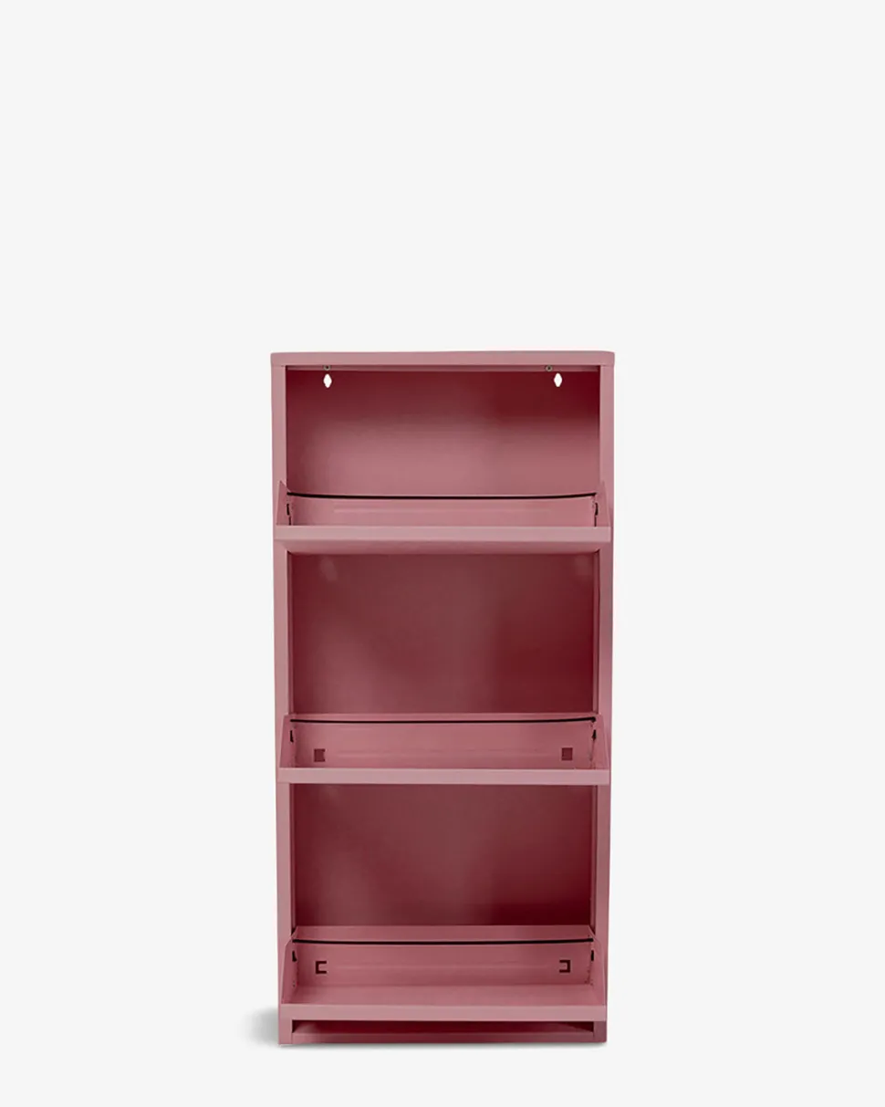 Caruso Skoskab i pulverlakeret stålplade med attraktiv rosa farvet lakering. Et stilrent og elegant møbel til entréen.