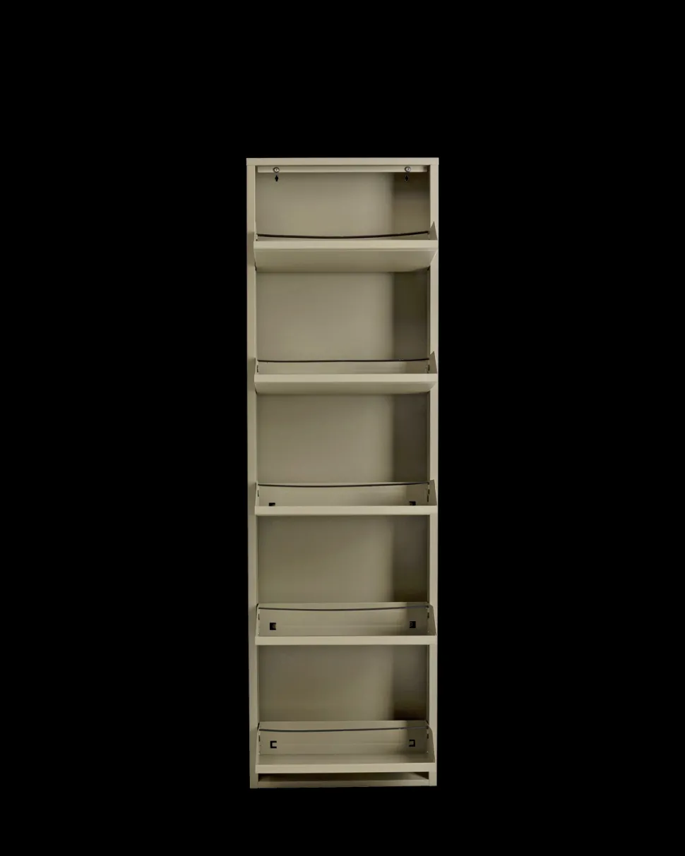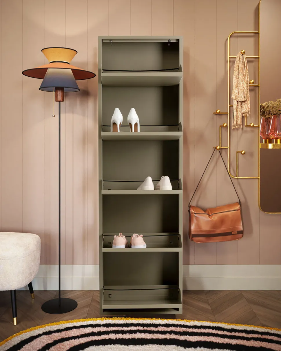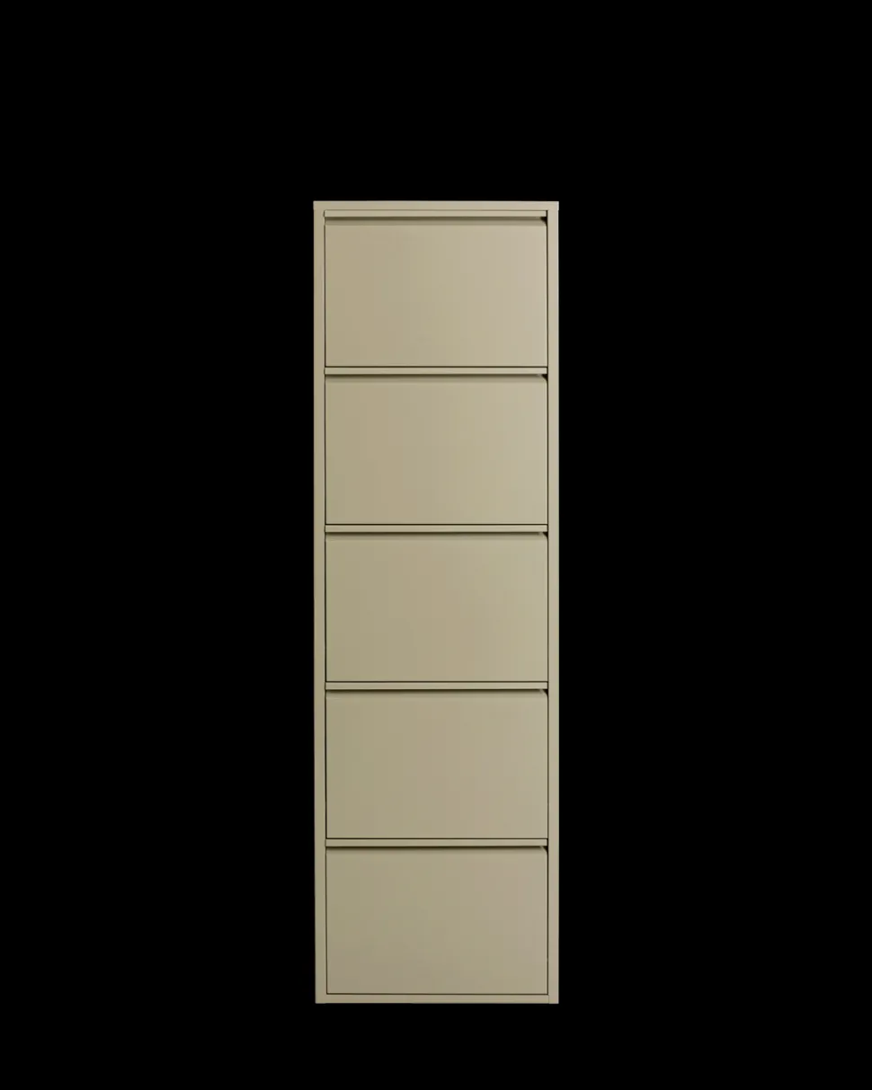 Caruso skoskab – 5 låger i khaki. Slankt metal skoskab til entréen.