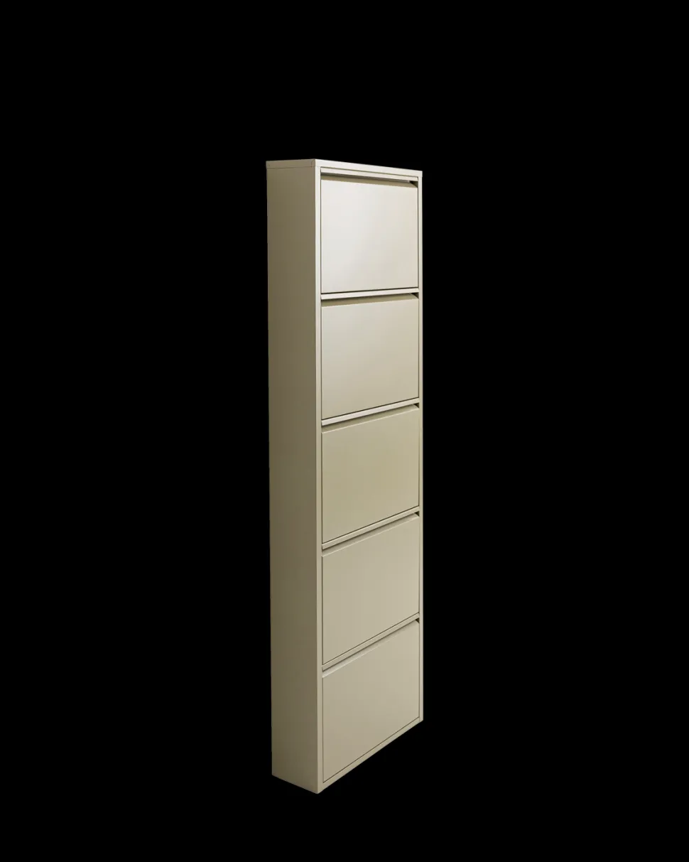 Denne variant med 5 låger giver ekstra opbevaringsplads og er ideel til familien eller til dig, der ønsker orden i skoene. Khaki-farven tilfører et varmt og tidløst udtryk, der passer ind i mange typer indretning.