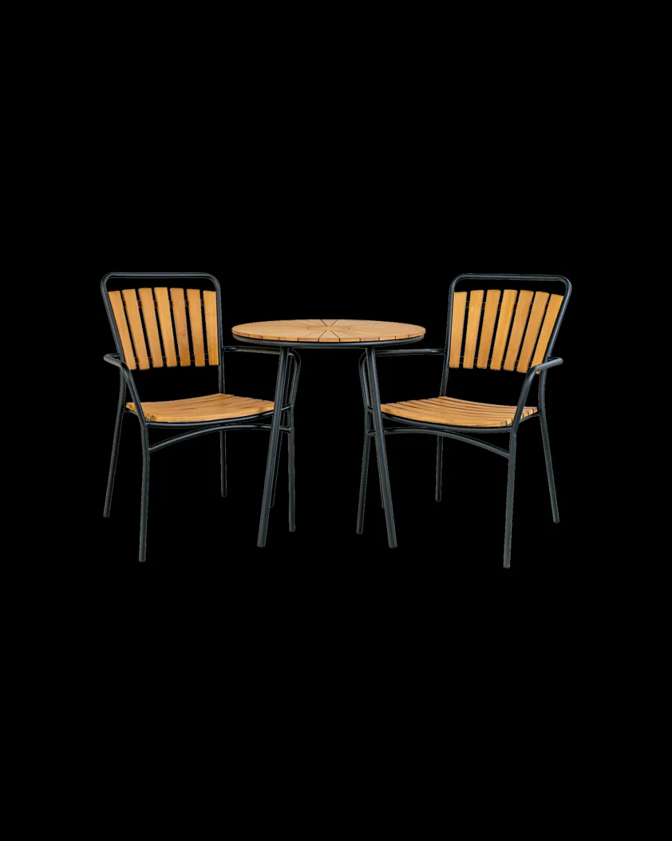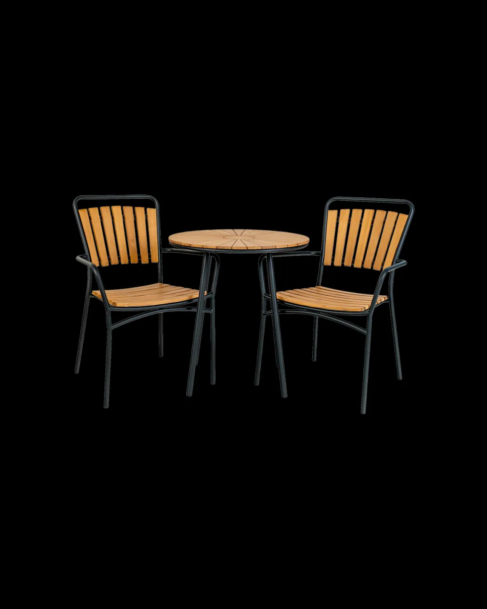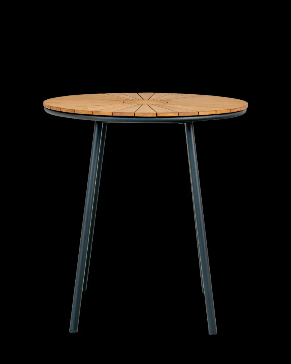 Cleveland cafébord Ø.70 cm med natur teak bordplade og sort metalstel. Stilrent og moderne bord til terrasse eller altan.