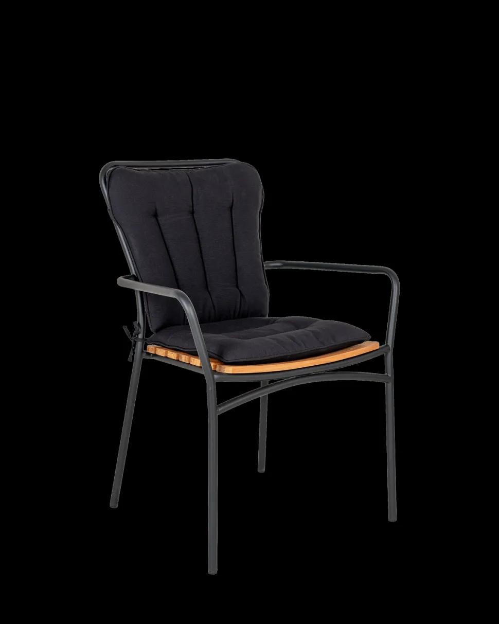 Den enkle sorte farve passer flot til stolens teaktræ og sorte stel og fuldender stolens stilrene udtryk.