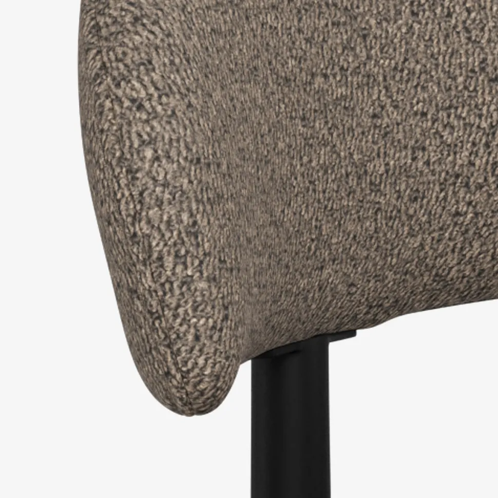 Stolens organiske former giver et indbydende udtryk, mens de slanke, sorte metalben tilfører et let og stilrent look. En perfekt balance mellem æstetik og funktionalitet gør stolen velegnet til både spisebordet, køkkenet eller som ekstra siddeplads i hjemmet.