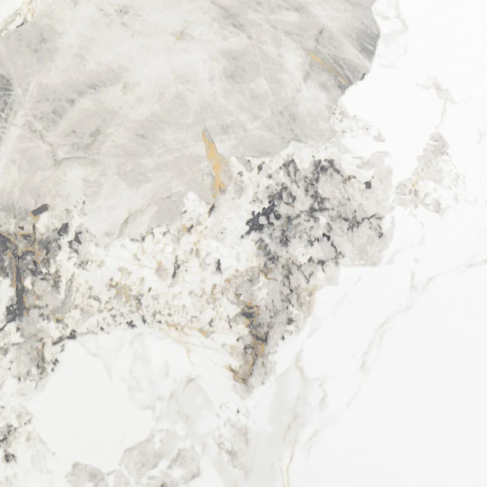 Den kegleformede bund er udsmykket med brun træindretning, og bordpladen er keramisk marmor look med elegant messingkant.