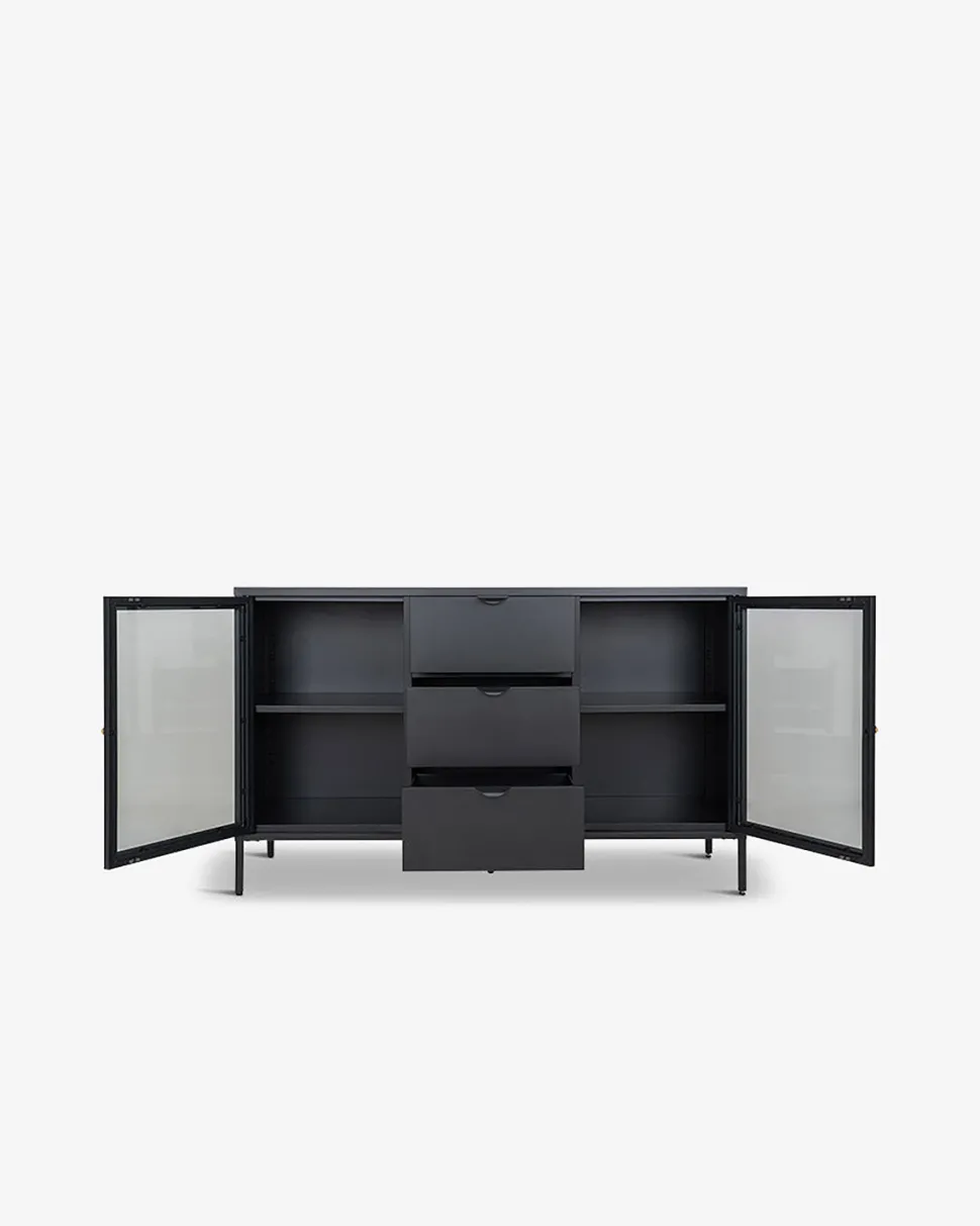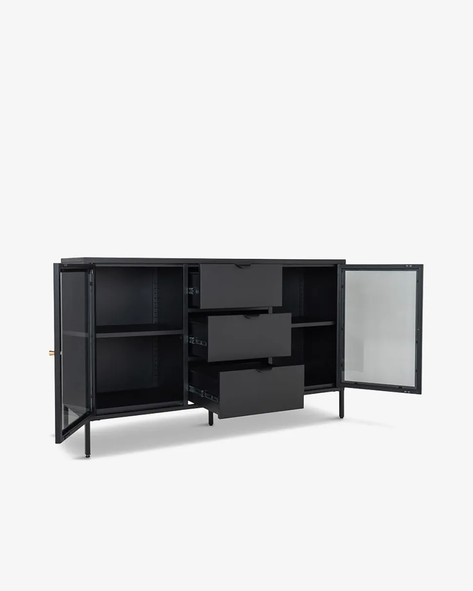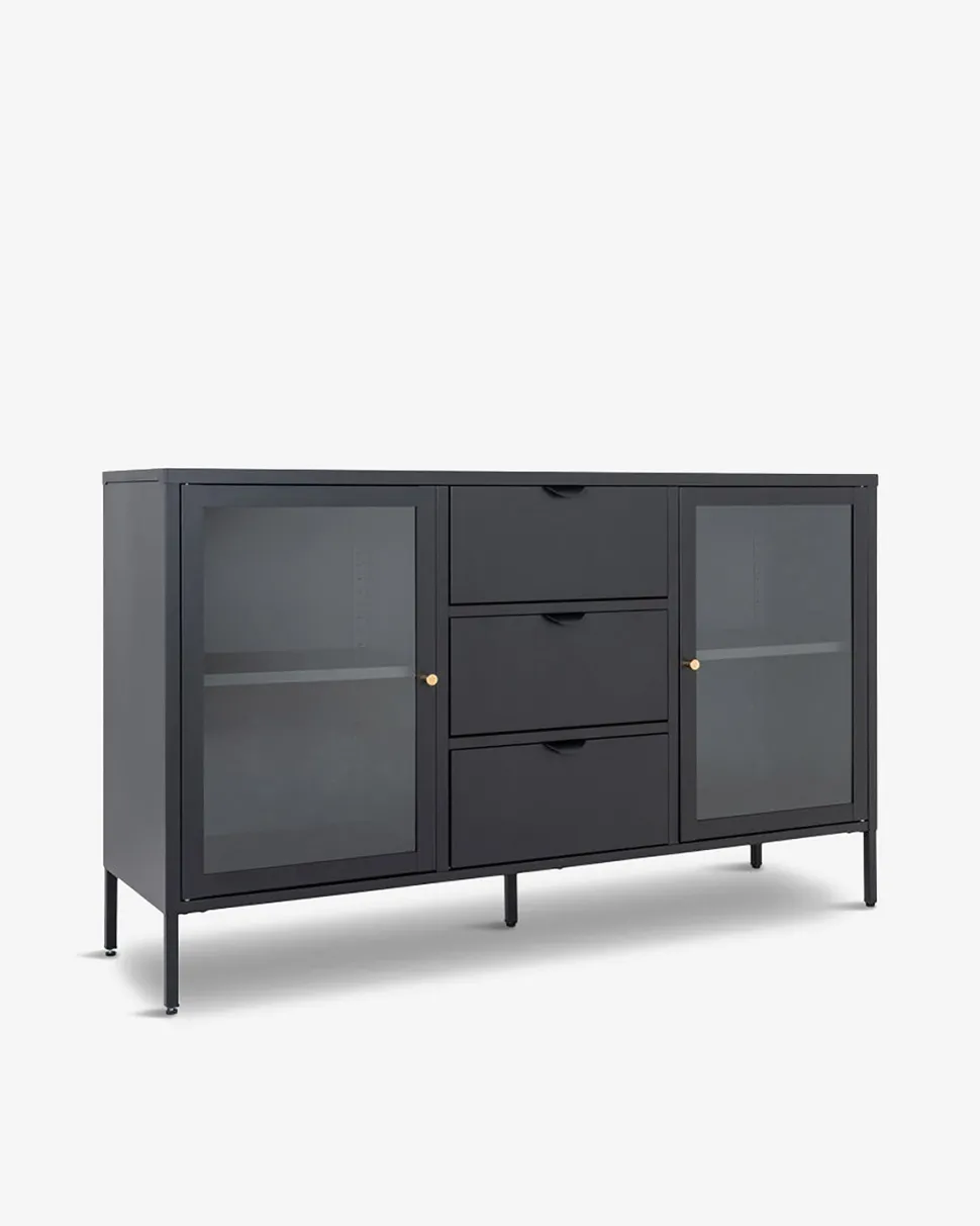 Dalby skænk i sort er et sofistikeret møbelstykke, der forener stil og funktionalitet.