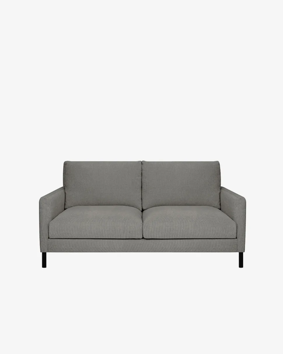 Sofaen er polstret med blødt, slidstærkt stof og har rummelige siddepladser, der giver høj komfort for op til tre personer. De faste hynder sikrer god støtte og bevarer formen, selv ved daglig brug. De lige armlæn og den stabile konstruktion giver sofaen et solidt og indbydende udtryk.