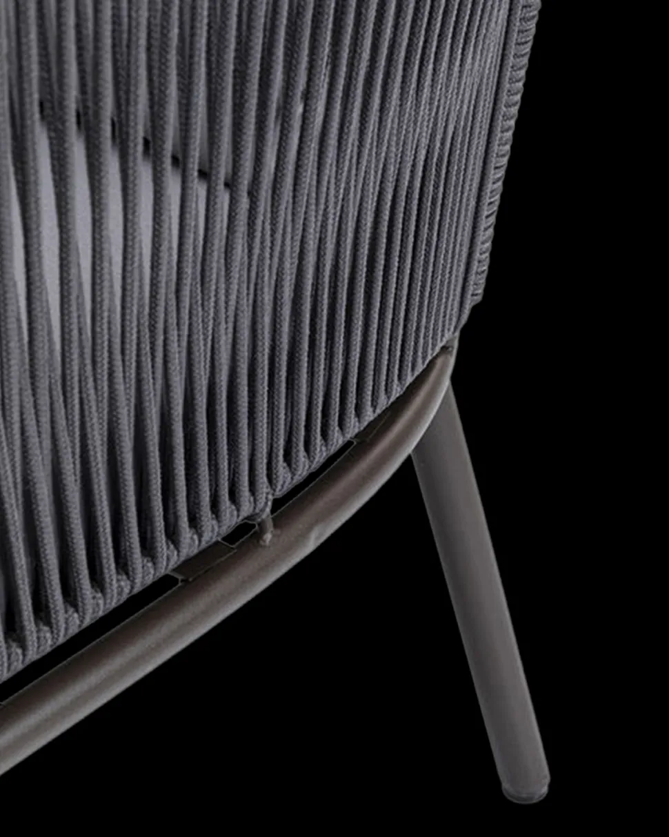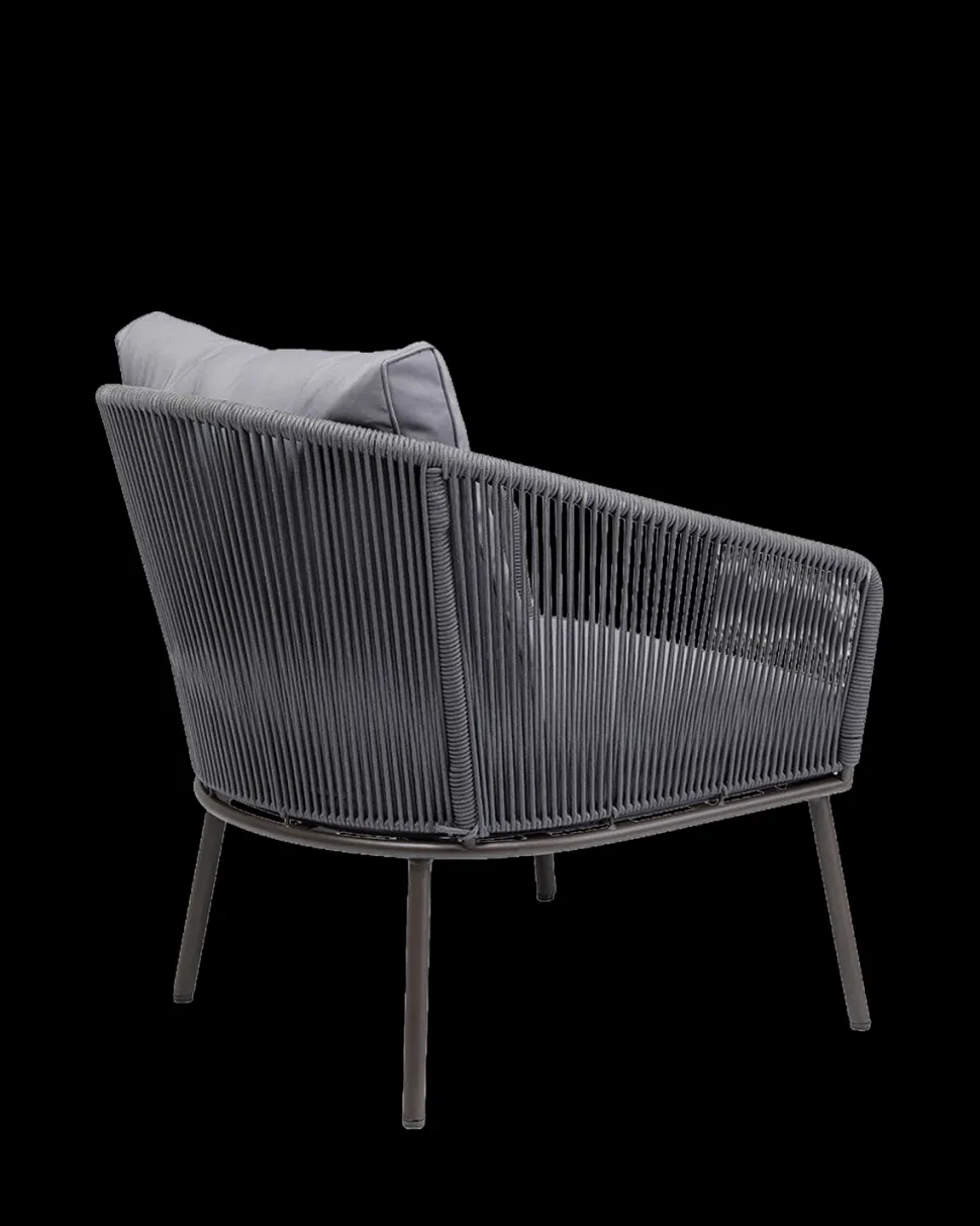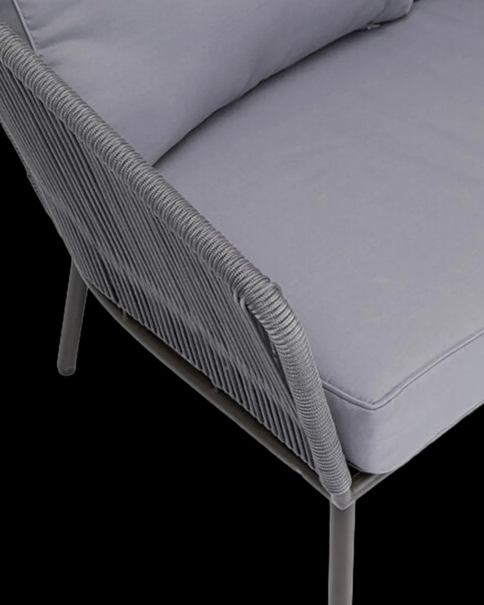 Sættet består af en 2 personers sofa, to lænestole og et rektangulært sofabord. Det luftige fletdesign skaber visuel lethed, mens de komfortable ryg- og sædehynder giver en indbydende og afslappet siddeoplevelse.