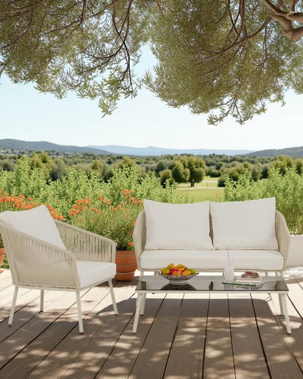 Elba er et loungesæt med premium-fornemmelse – velegnet til både minimalistiske uderum og mere stemningsfulde, middelhavs-inspirerede omgivelser.