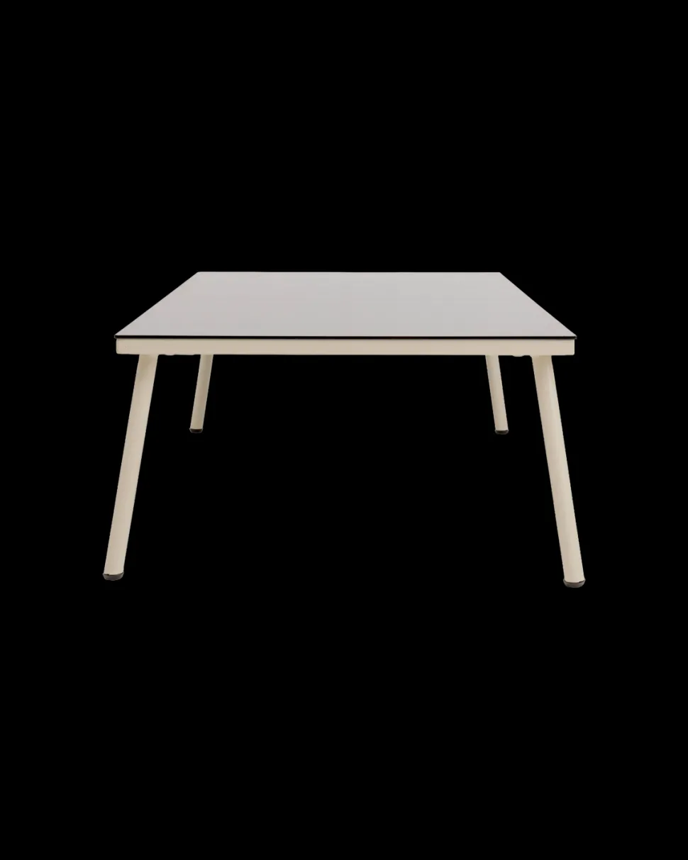 Sofabordet har en mørk bordplade i farvet ESG sikkerhedsglas, som skaber en flot kontrast til de lyse toner og samtidig er nem at vedligeholde. Stel og ben er fremstillet i pulverlakeret stål, hvilket sikrer stabilitet og lang holdbarhed.