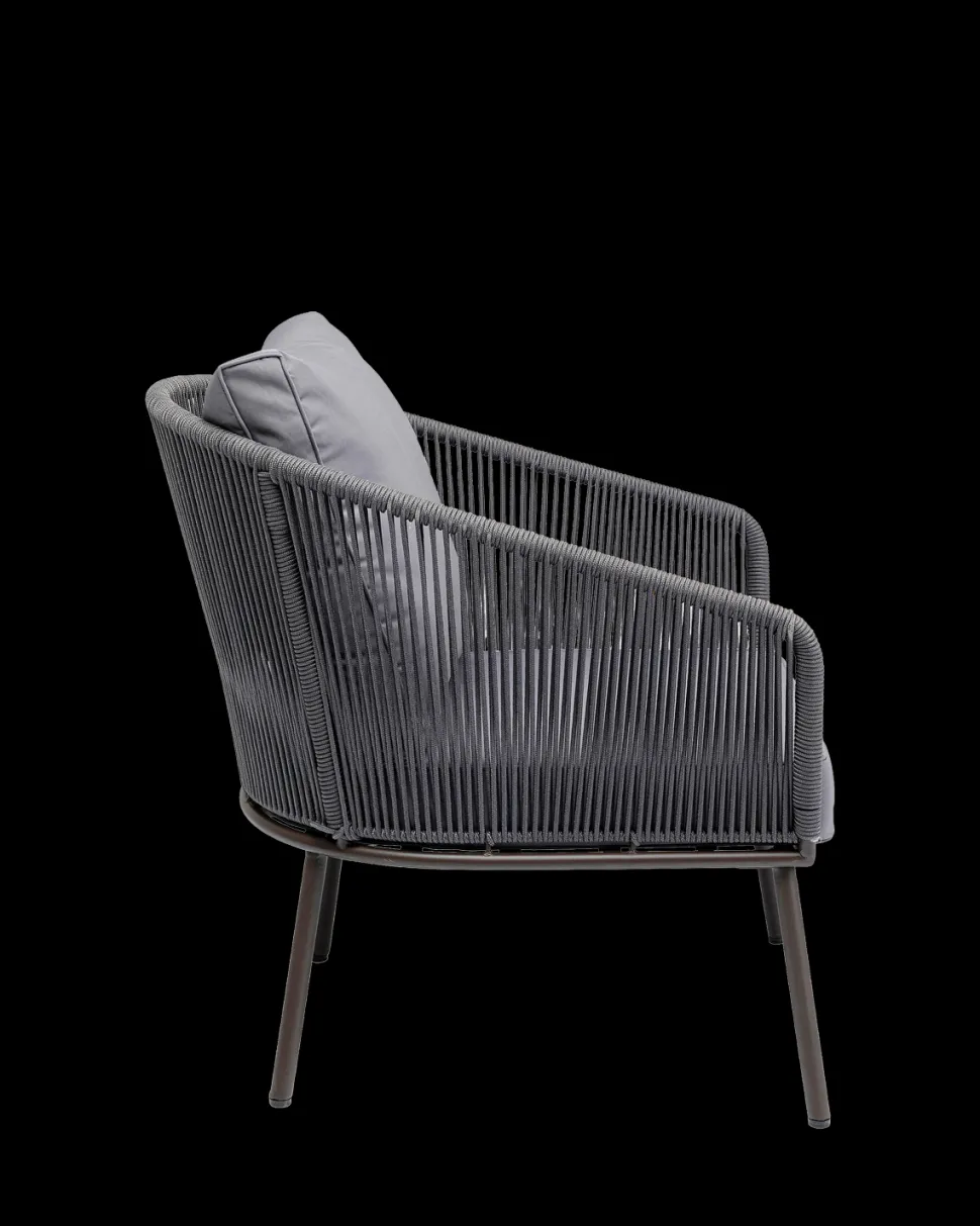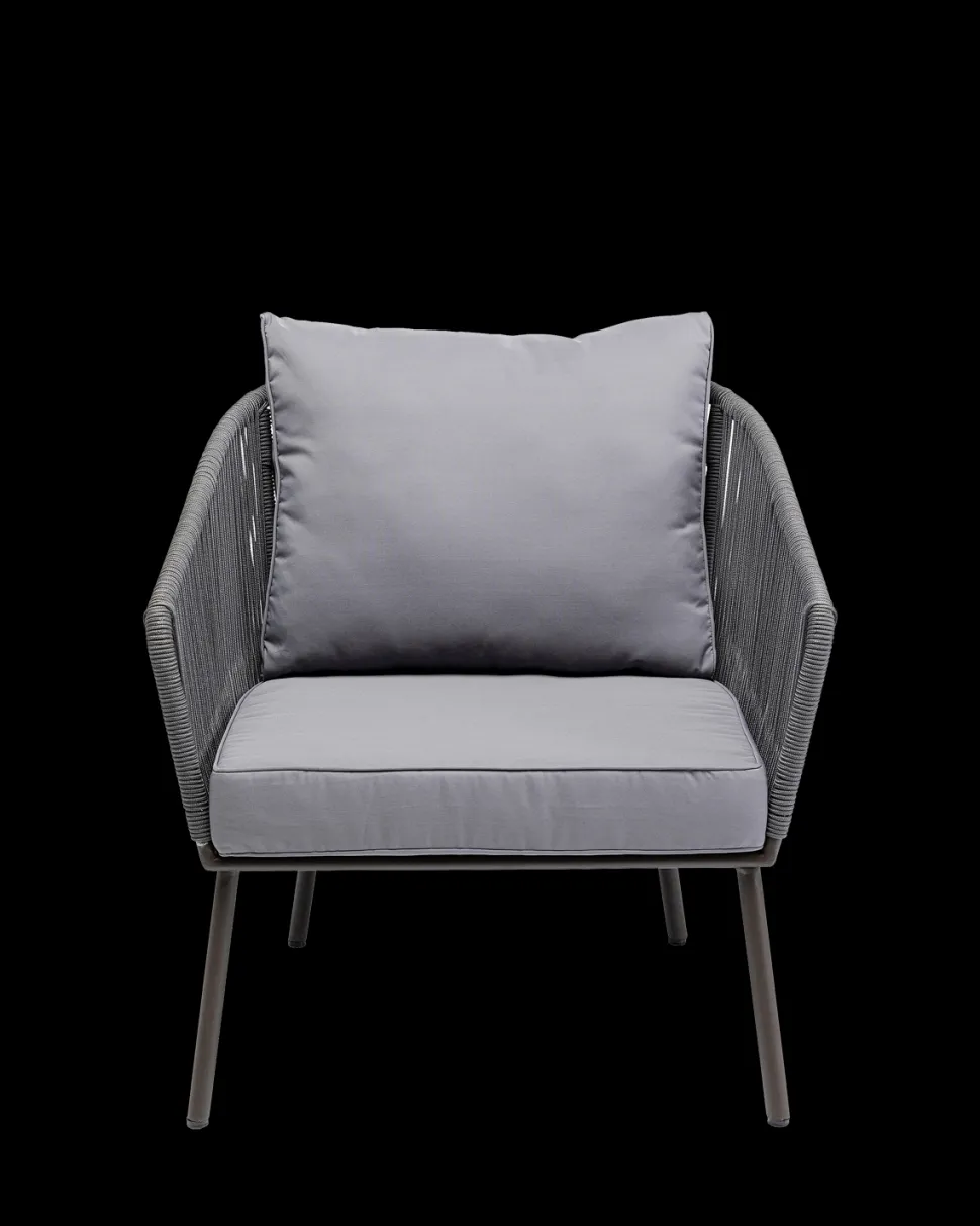 Elba loungestol i grå – moderne design med luksuriøs kant. Komfortabel og stilren lounge til uderummet.