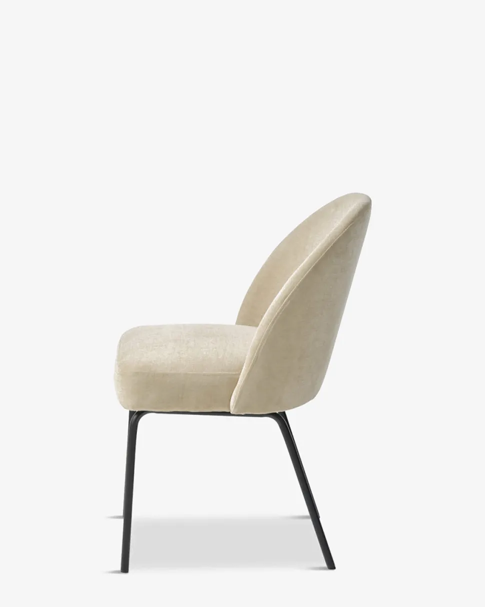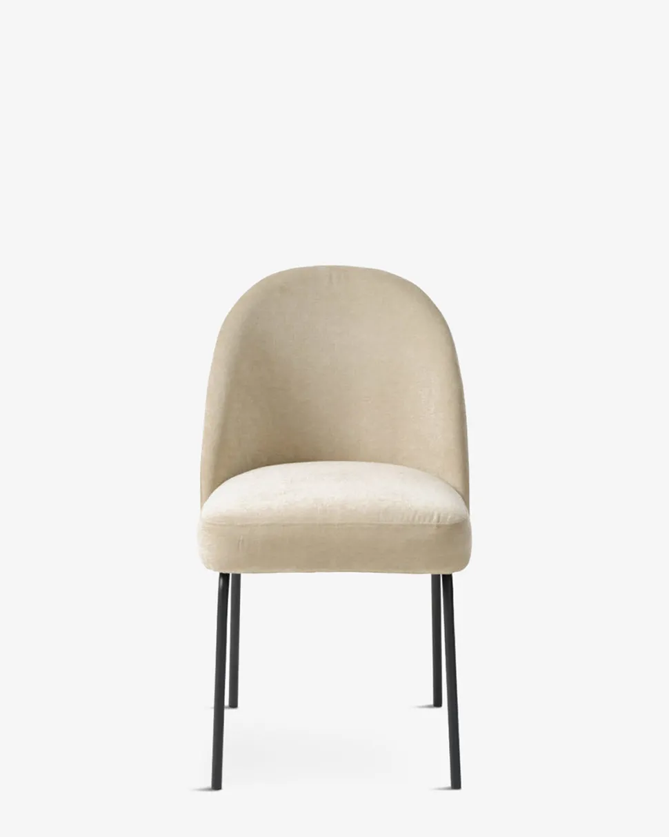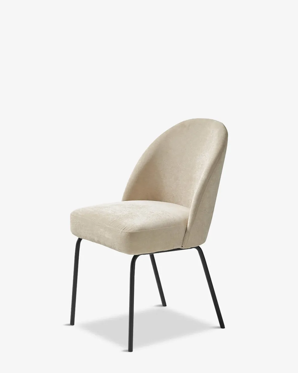 Esma er en meget smuk polstret spisebordsstol med lækkert blødt Chenille betræk i farven sand.