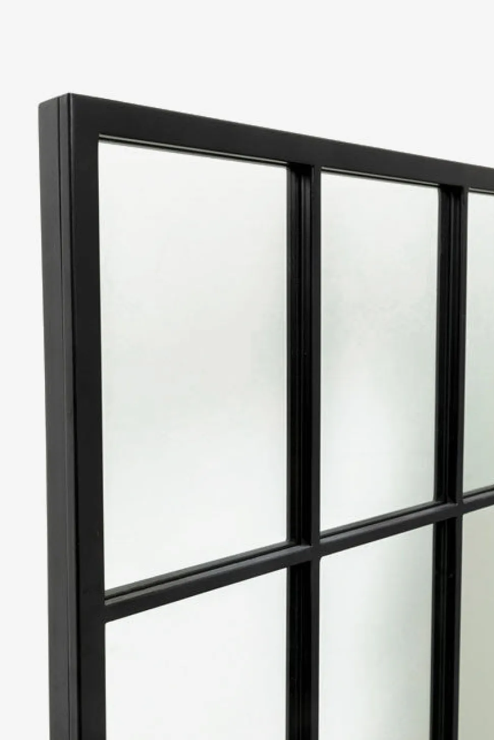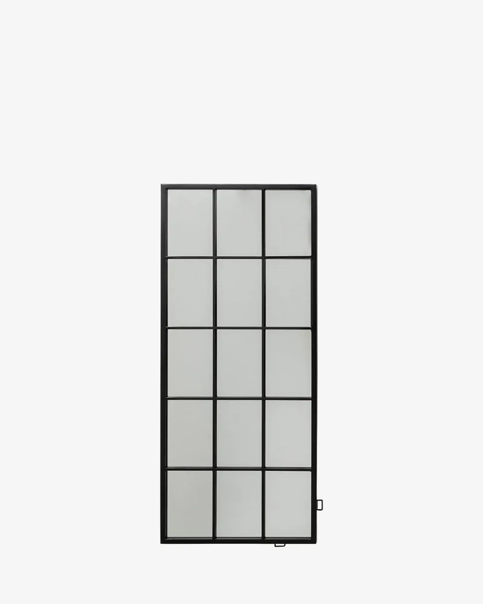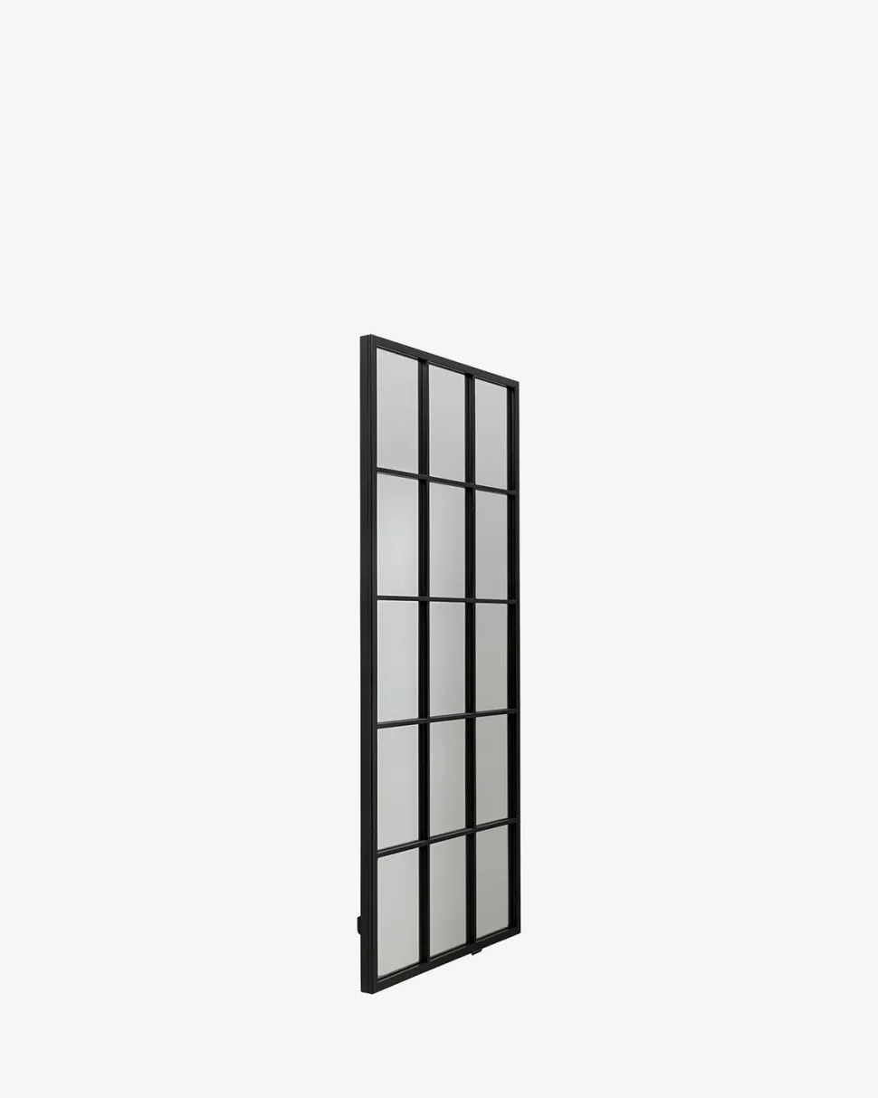 Finestra spejlet er inspireret af klassiske New York-vinduer og tilfører et råt og stilrent udtryk til hjemmet. Den sorte ramme med inddelte felter skaber et arkitektonisk look, der både fungerer som spejl og dekorativt element.