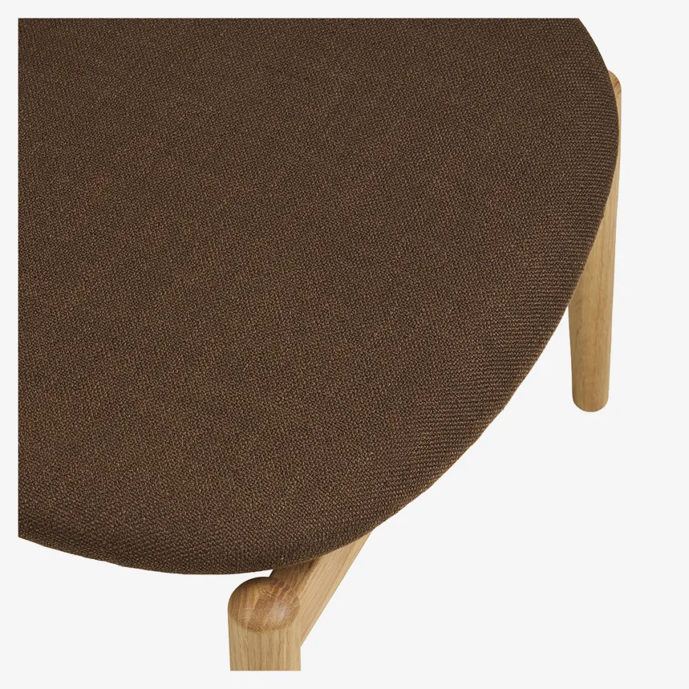 Tilføj et strejf af naturlig varme og enkel elegance til dit hjem med denne smukke skammel i egetræ. Med sit bløde, brune polstrede sæde kombinerer den komfort og stil på en perfekt måde. Skamlen er ideel som ekstra siddeplads, fodskammel eller dekorativt element i stuen, soveværelset eller kontoret.