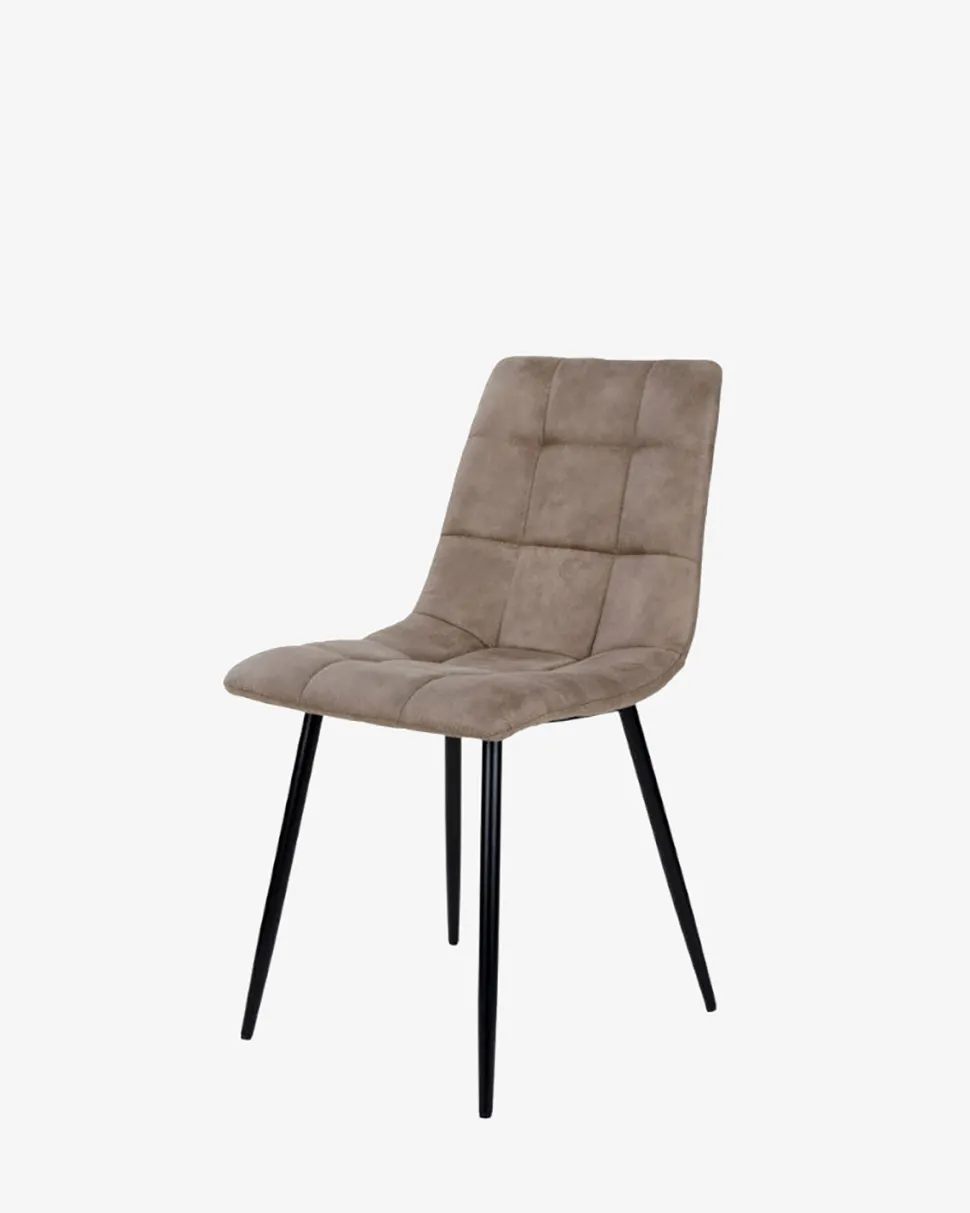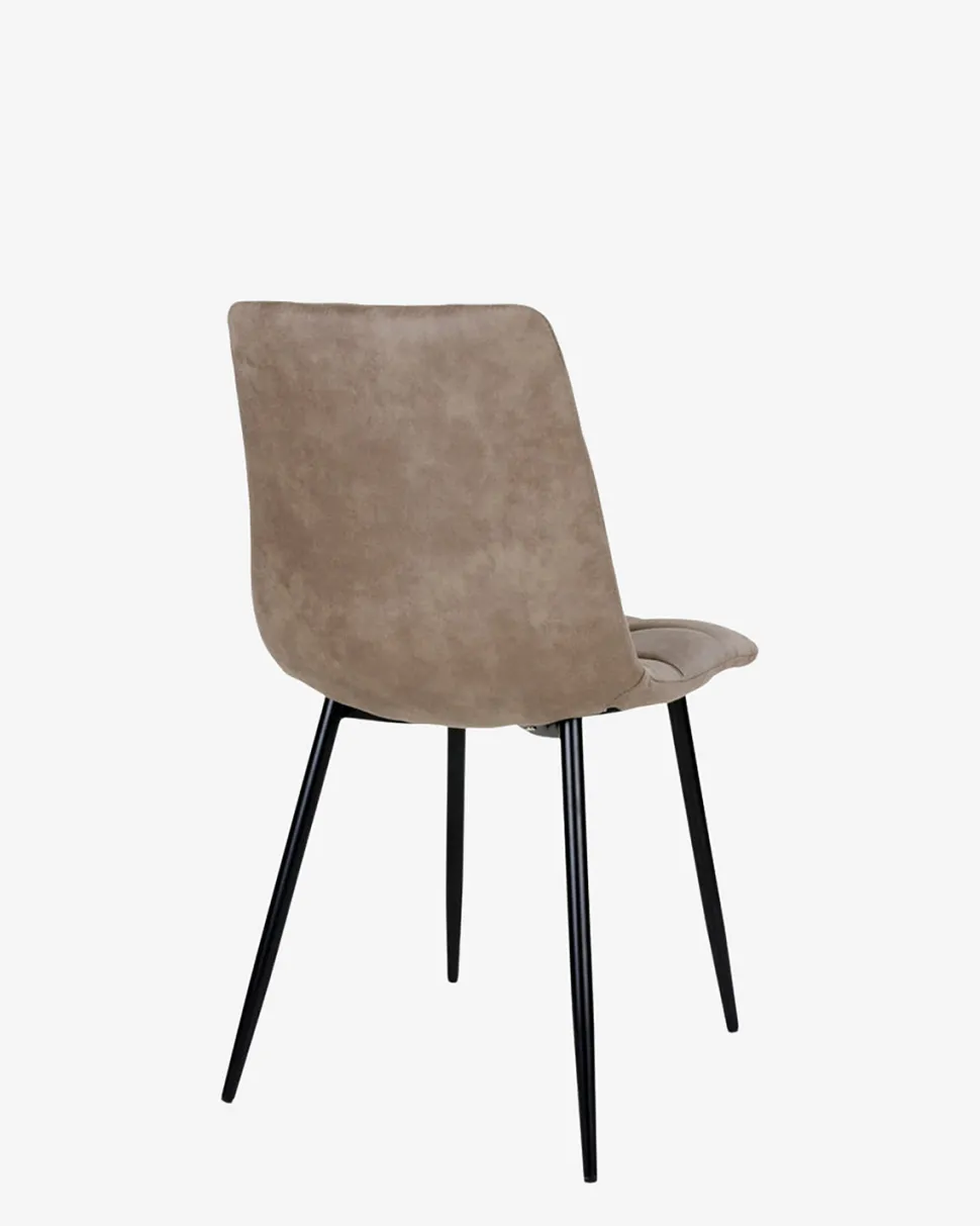 Frigg spisebordsstol er her i en lækker lys brun microfiber, og med en fantastisk sidde komfort på grund af det polstrede sæde og ryg.