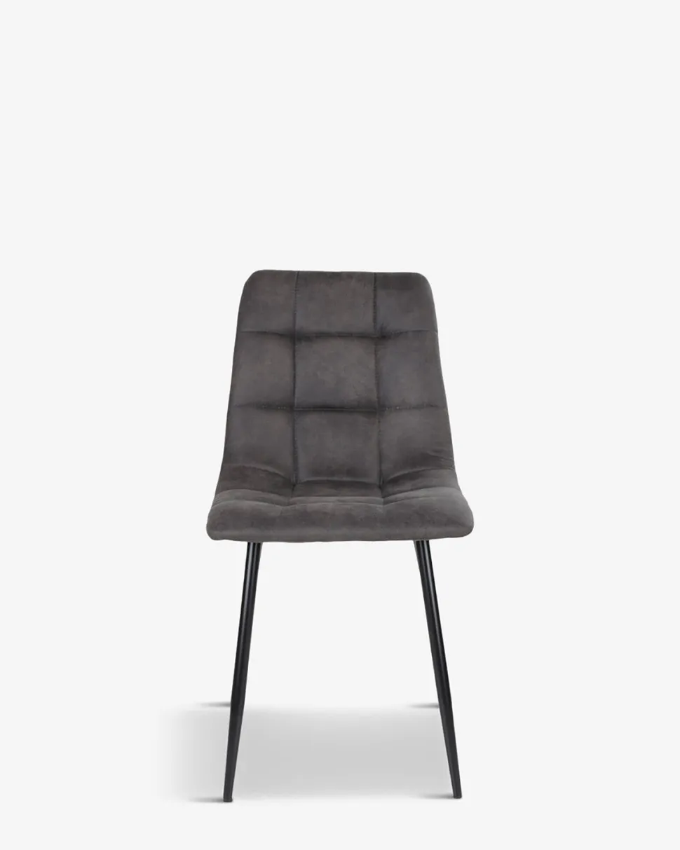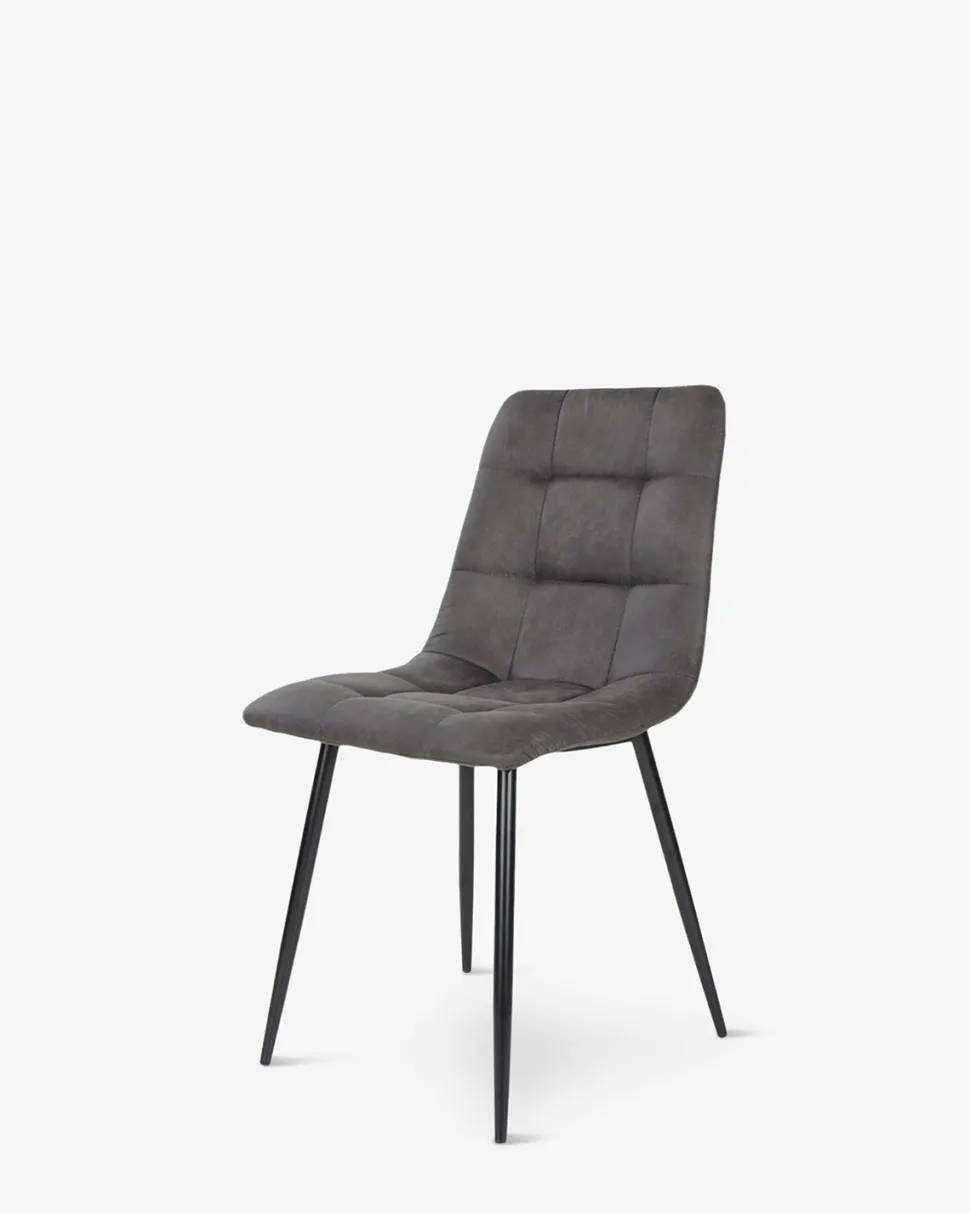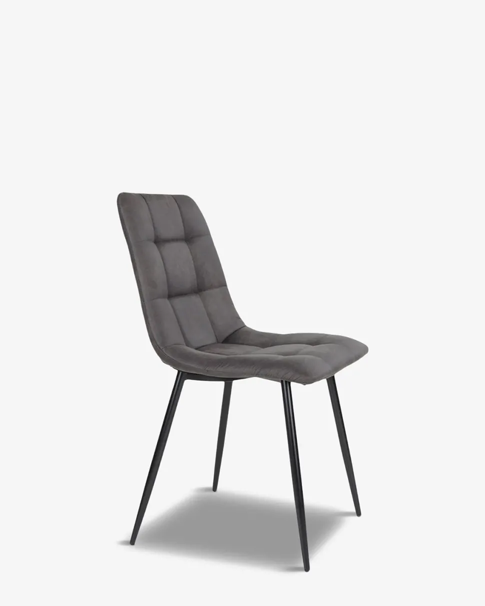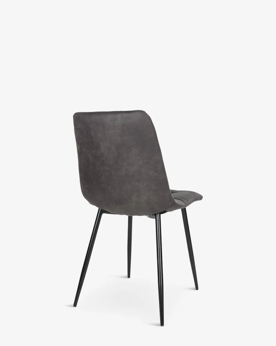 Spisebordsstol i en lækker mørk grå mikrofiber, og med en fantastisk sidde komfort på grund af det polstrede sæde og ryg.