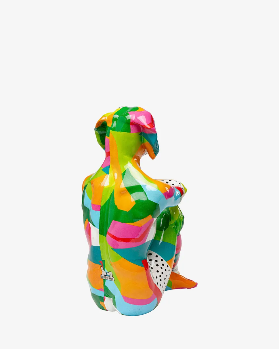 +Farverig dekorativ hundefigur lavet af en kunstner, 39 x 25 x 14 cm