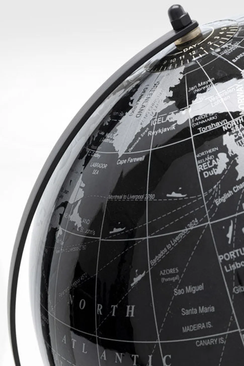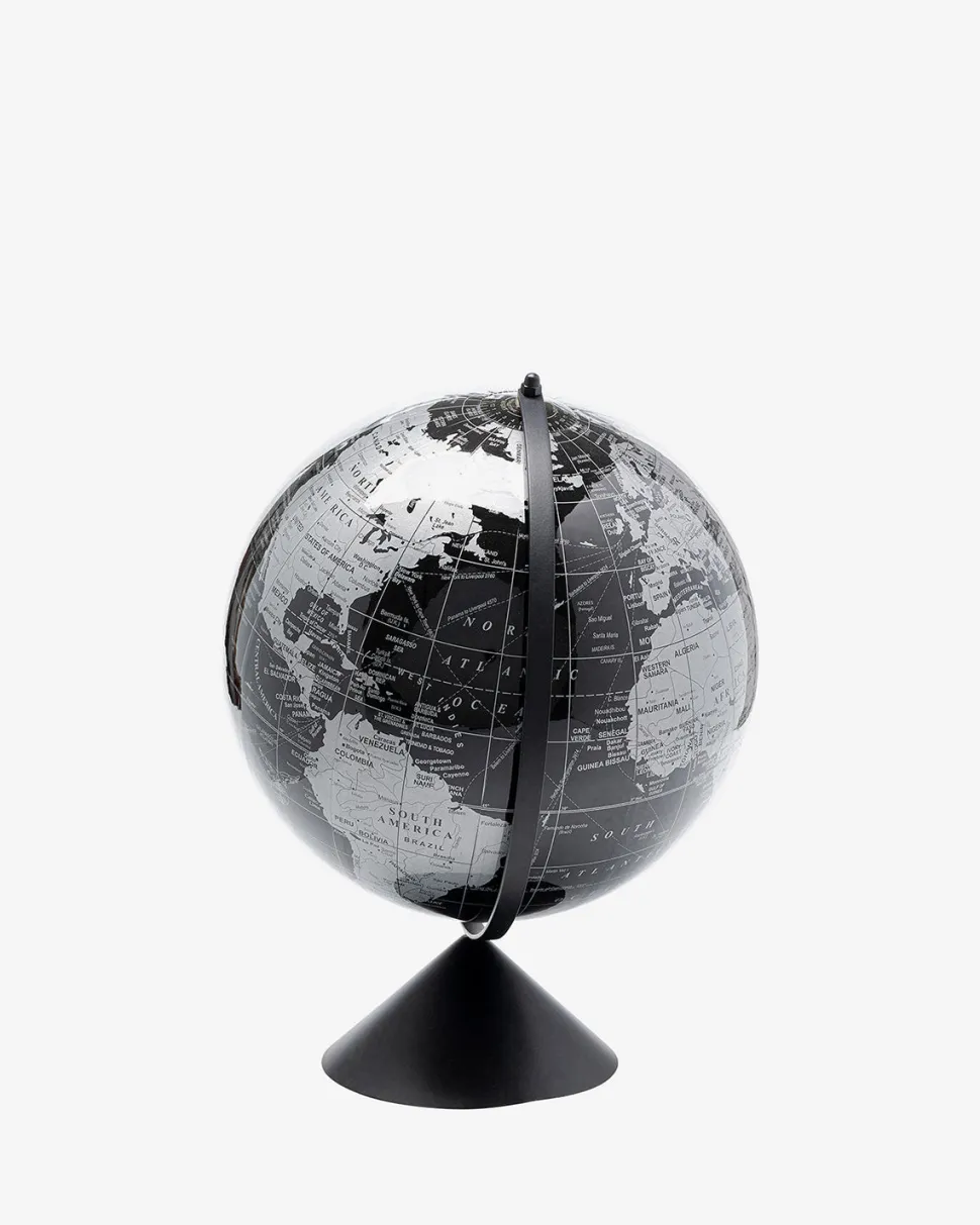 Denne stilrene globus i sort og grå toner kombinerer klassisk funktion med moderne æstetik. Med en højde på 40 cm er den perfekt som dekorativt indslag på reolen, skrivebordet eller hjemmekontoret.