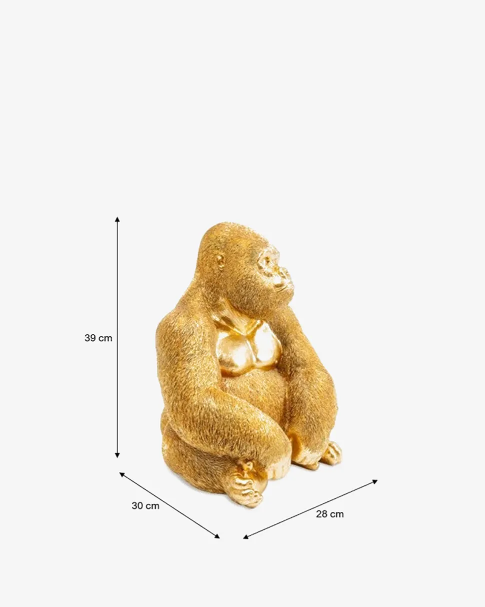 Denne storslåede og dekorative guldfarvede gorilla-statue er et absolut blikfang og er umulig at ignorere.