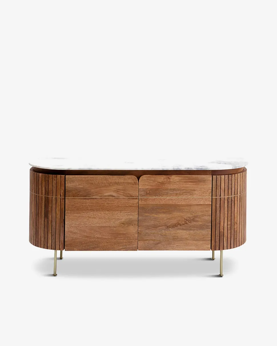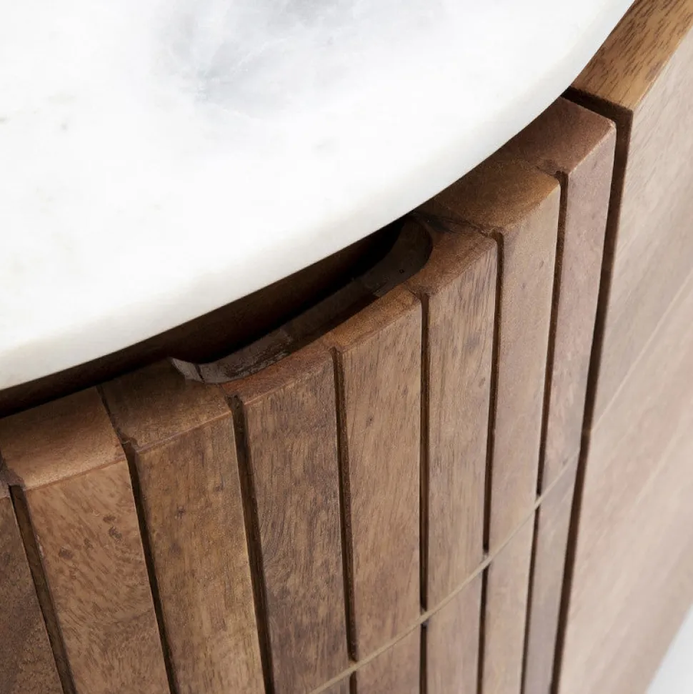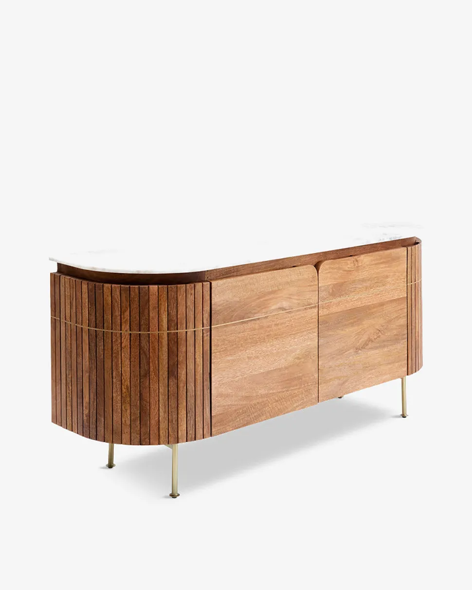 Elegant Grace skænk i mangotræ med hvid marmortop, der vil stå i din stue som en smuk og samtidig praktisk detalje i rummet.
