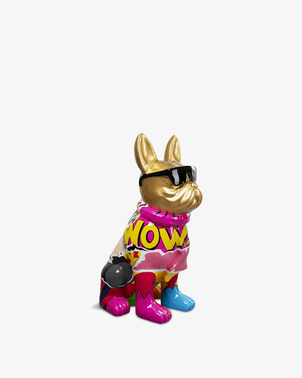 Graffiti bulldog hunden med sine smarte solbriller bringer et kunstnerisk flair til indretningen.