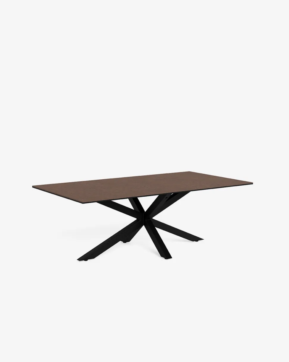 Heaven sofabord forener moderne design med robuste materialer. Den rustbrune keramiske bordplade tilfører varme og karakter til indretningen og har et naturligt stenmønster, der skaber et levende og sofistikeret udtryk. Overfladen er slidstærk, ridsefast og nem at rengøre